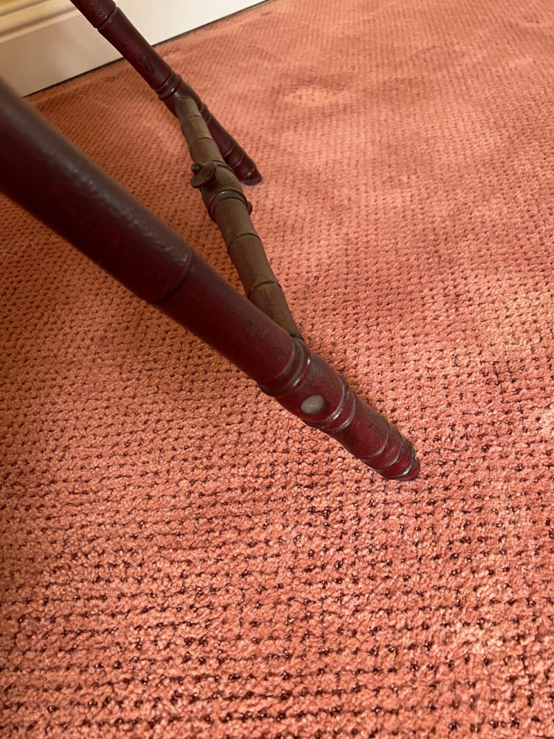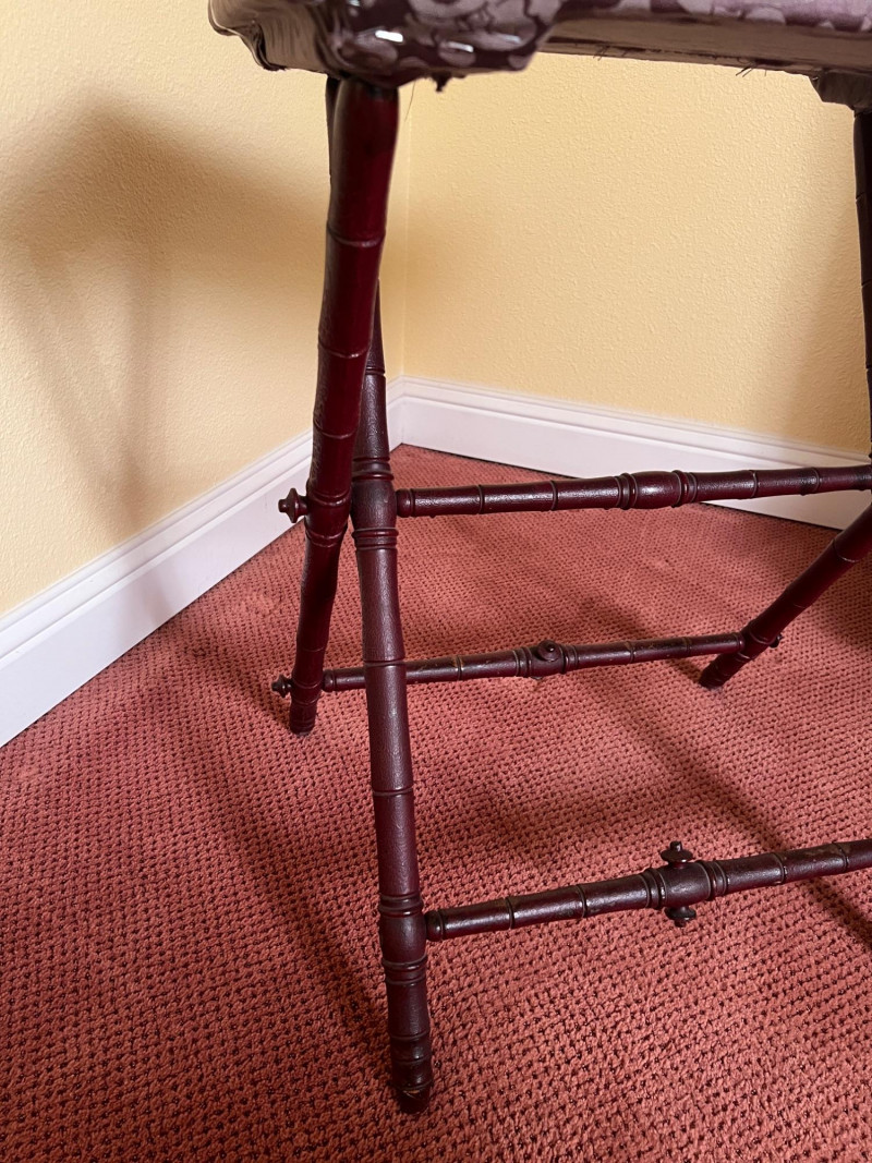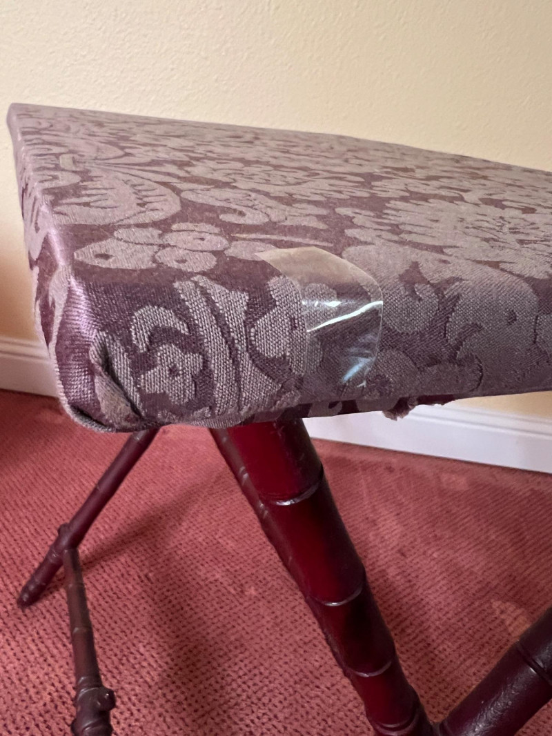 Vintage folding side table featuring a wood frame with an upholstered top surface. Designed in the style of a traditional butler’s tray table, this piece offers the same versatility in a fixed-top form. The folding base allows for easy storage, while the upholstered surface adds a soft decorative touch. Ideal as a side table, plant stand, or accent piece in a living room, bedroom, or guest space. Measurements: approximately 27” H x 24.25” W x 17” D Condition: [add notes—fabric condition, stability, wear, etc.] A practical and charming vintage piece with flexible use throughout the home.