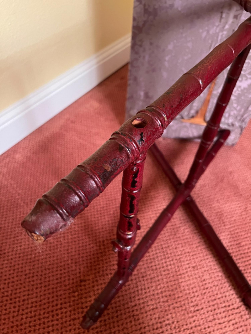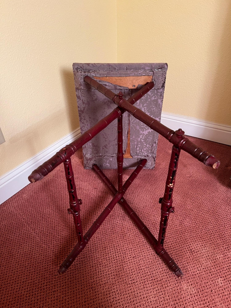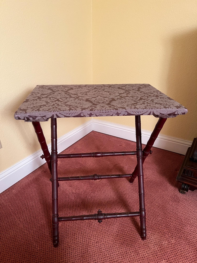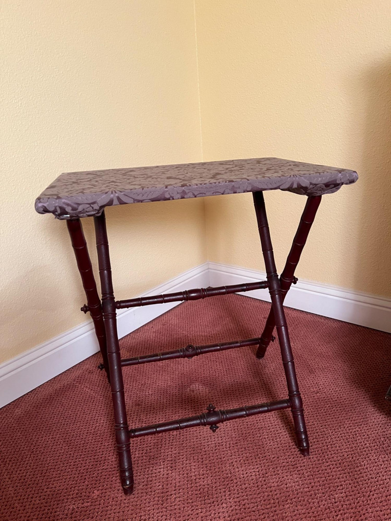 Lot # 49 - Vintage Upholstered Folding Tray Table Wood Side Table 27”