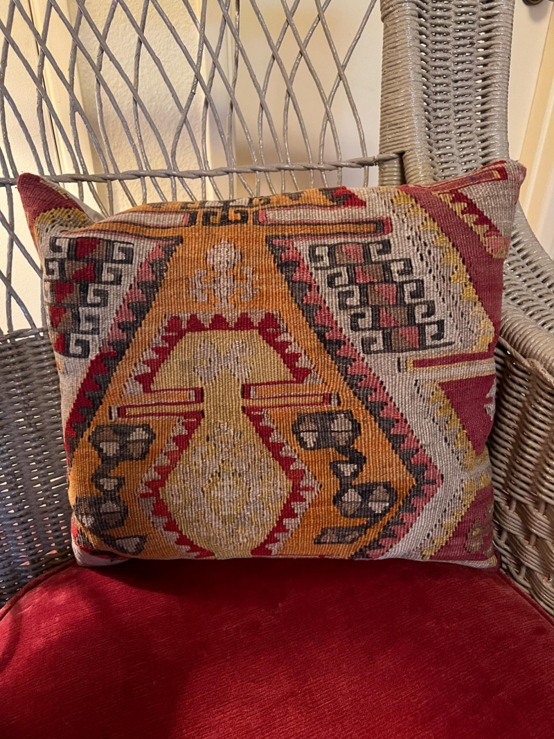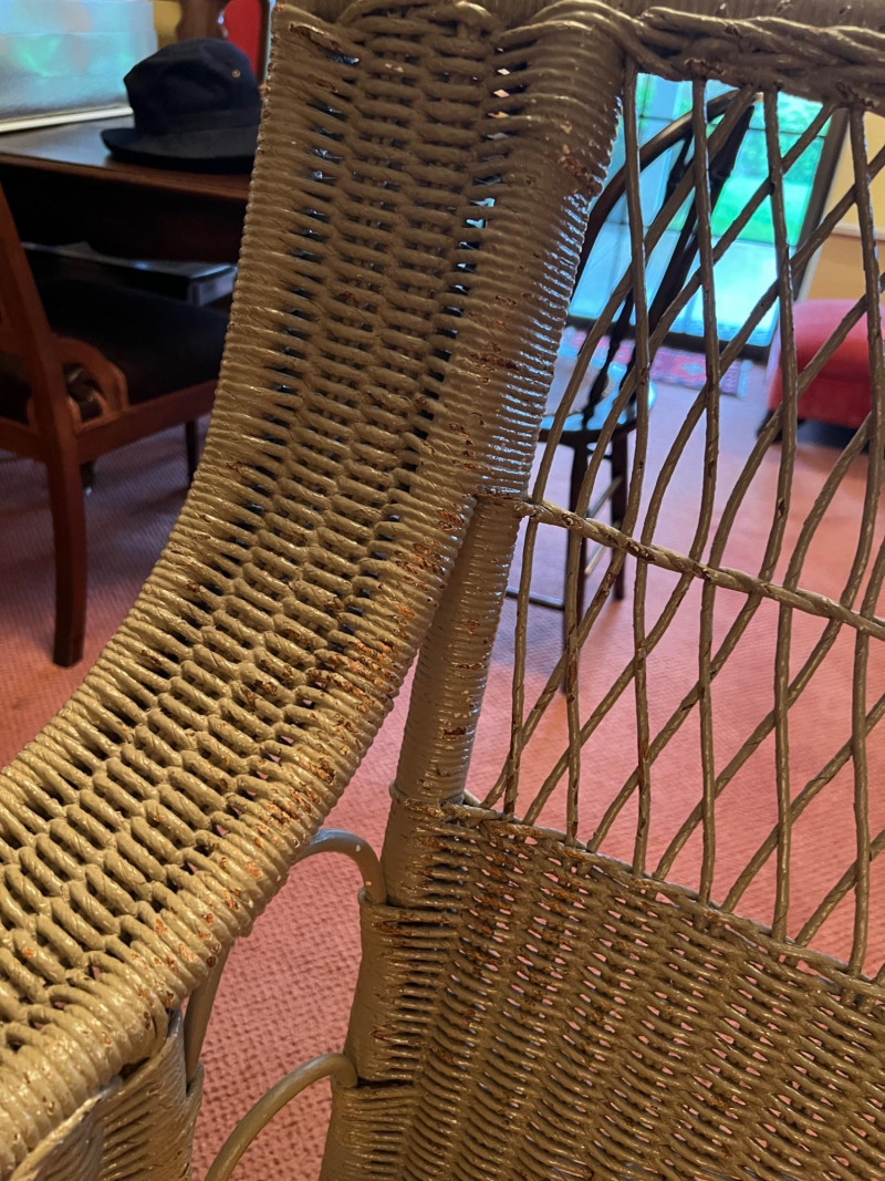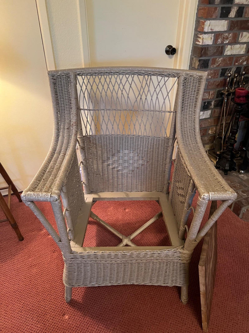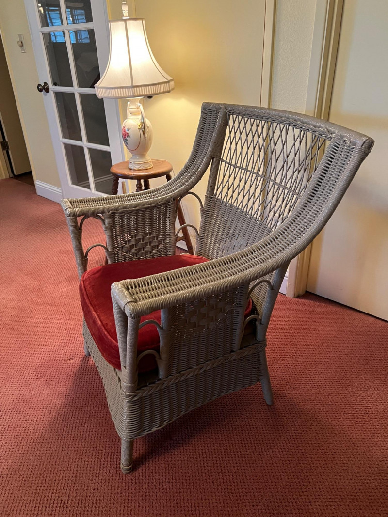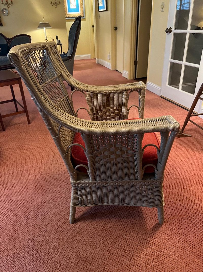 Lot # 57 - Antique Wicker Armchair Bar Harbor Style w/Cushion & Accent Pillow