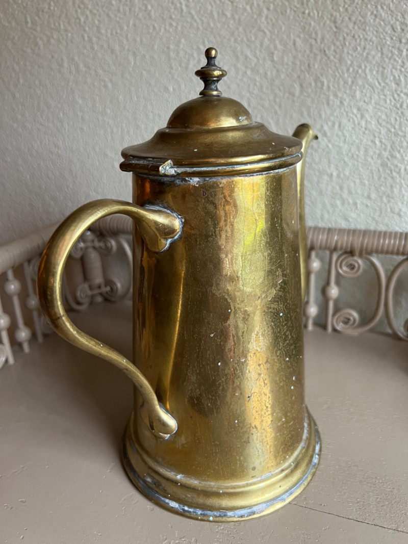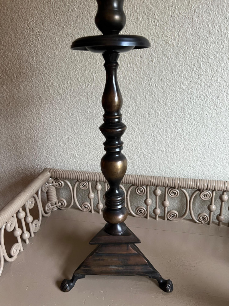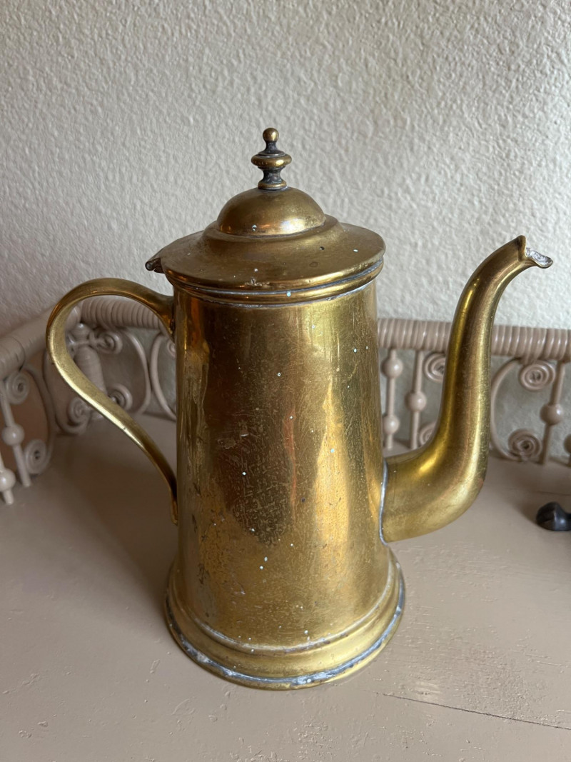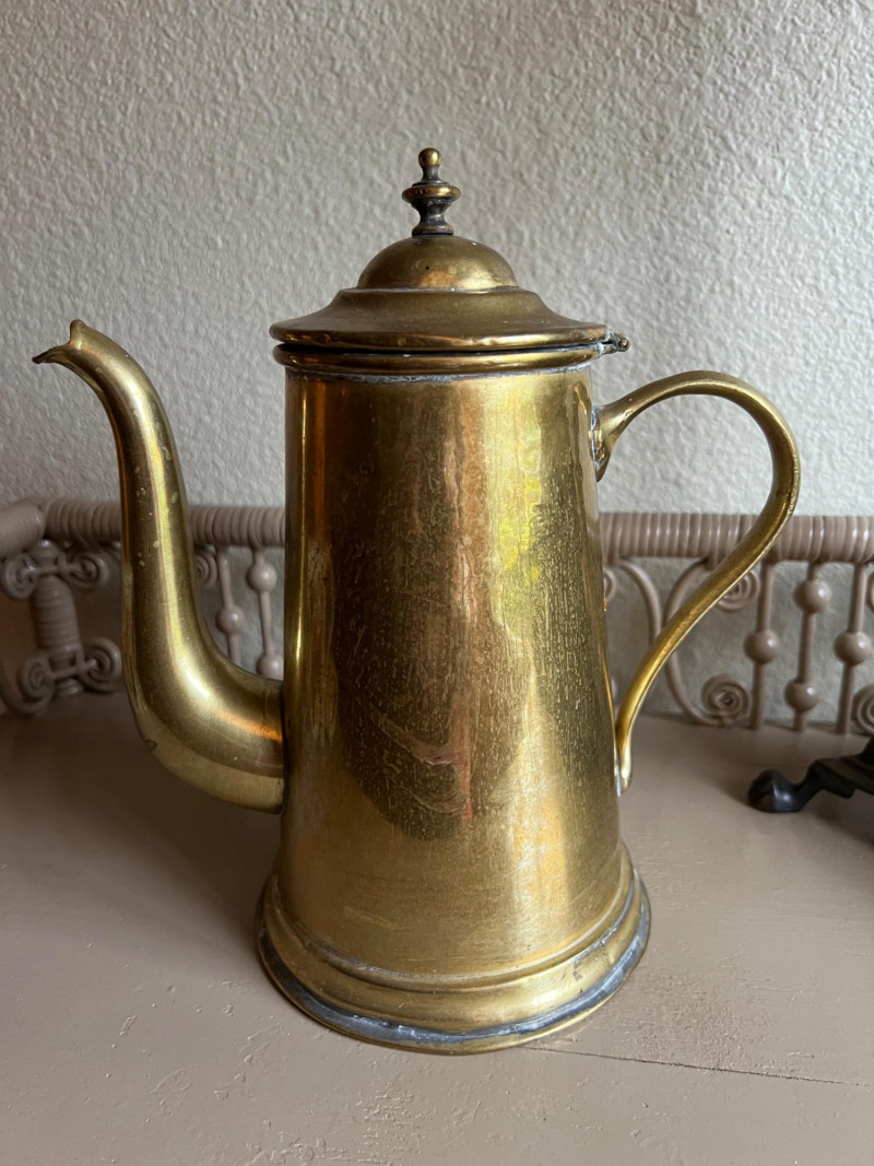Lot # 58 - Brass Candlestick, Coffee Pot & Leather Bookends – Old World Style