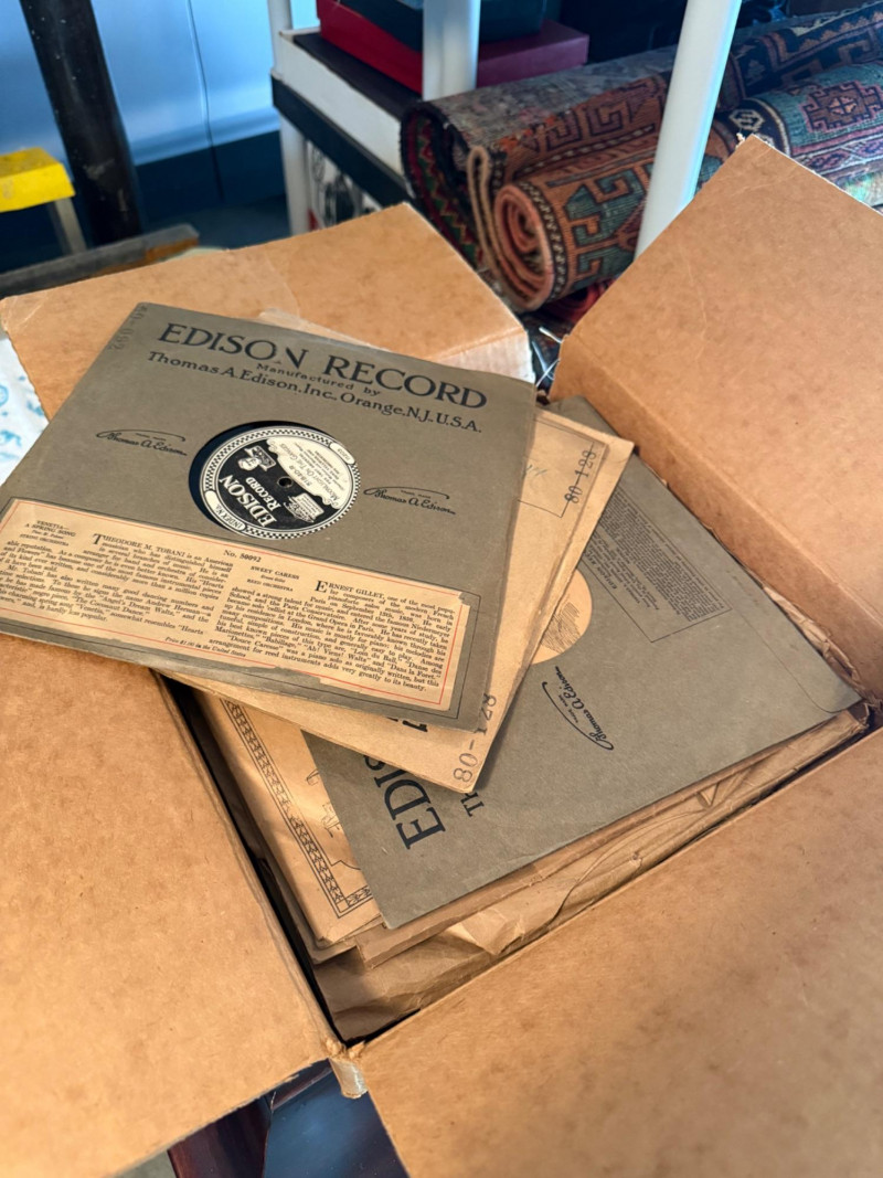 Lot # 85 - Edison Disc Phonograph Model A250 w/ Diamond Disc Records & Sleeves