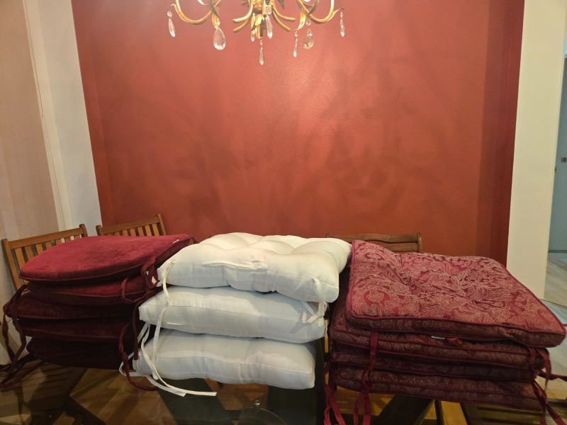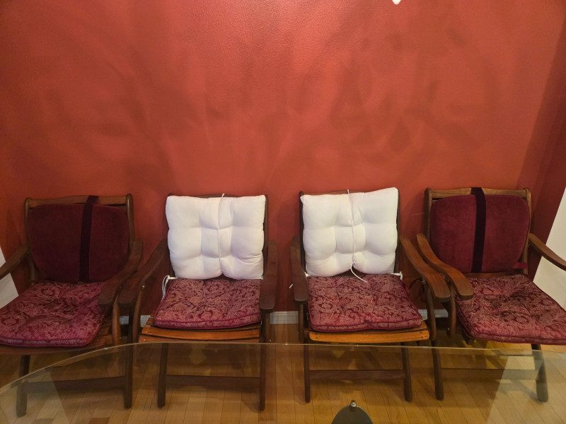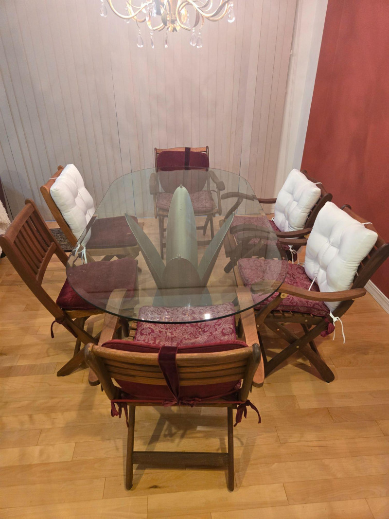 The table and chairs have been well‑maintained with no obvious structural issues. As with all used furniture, expect normal signs of wear consistent with age and use. Table: 40" x 80" x 29" H Arm Chair: 17" x 18" x 34H Armless: 15" x 16" x 34" H