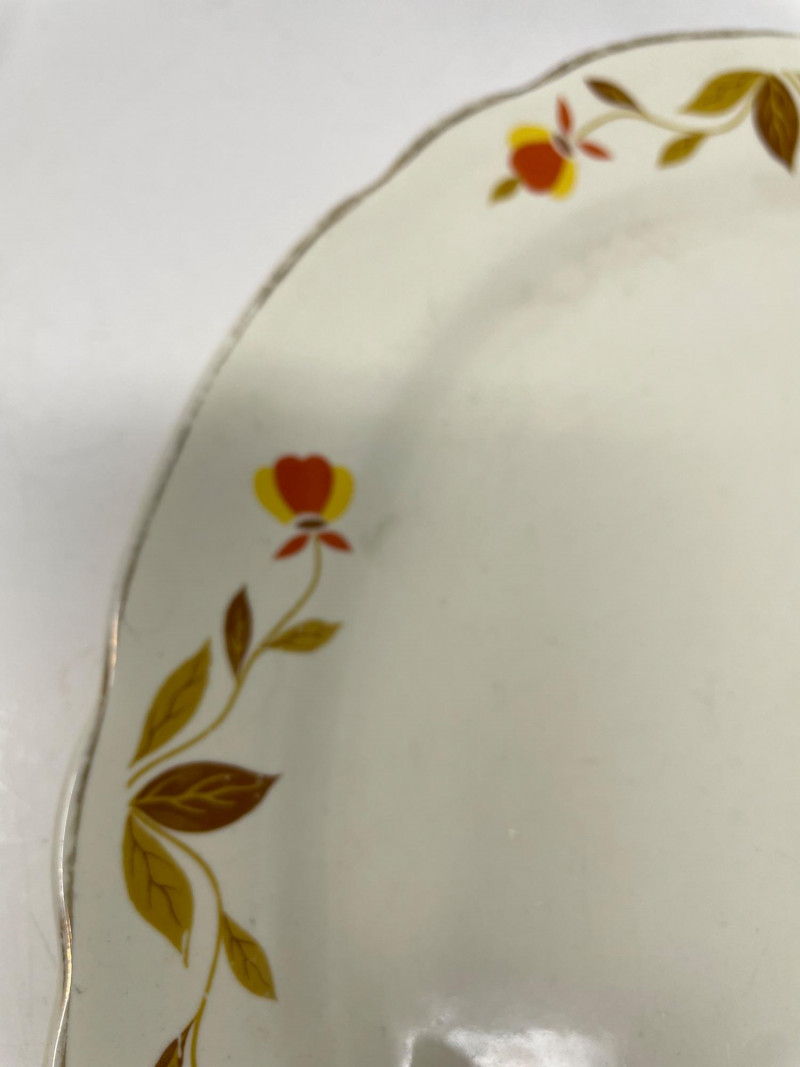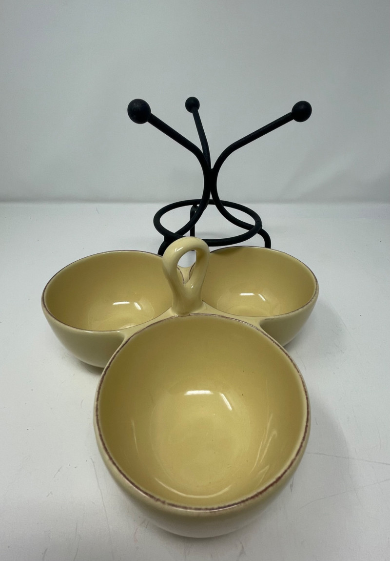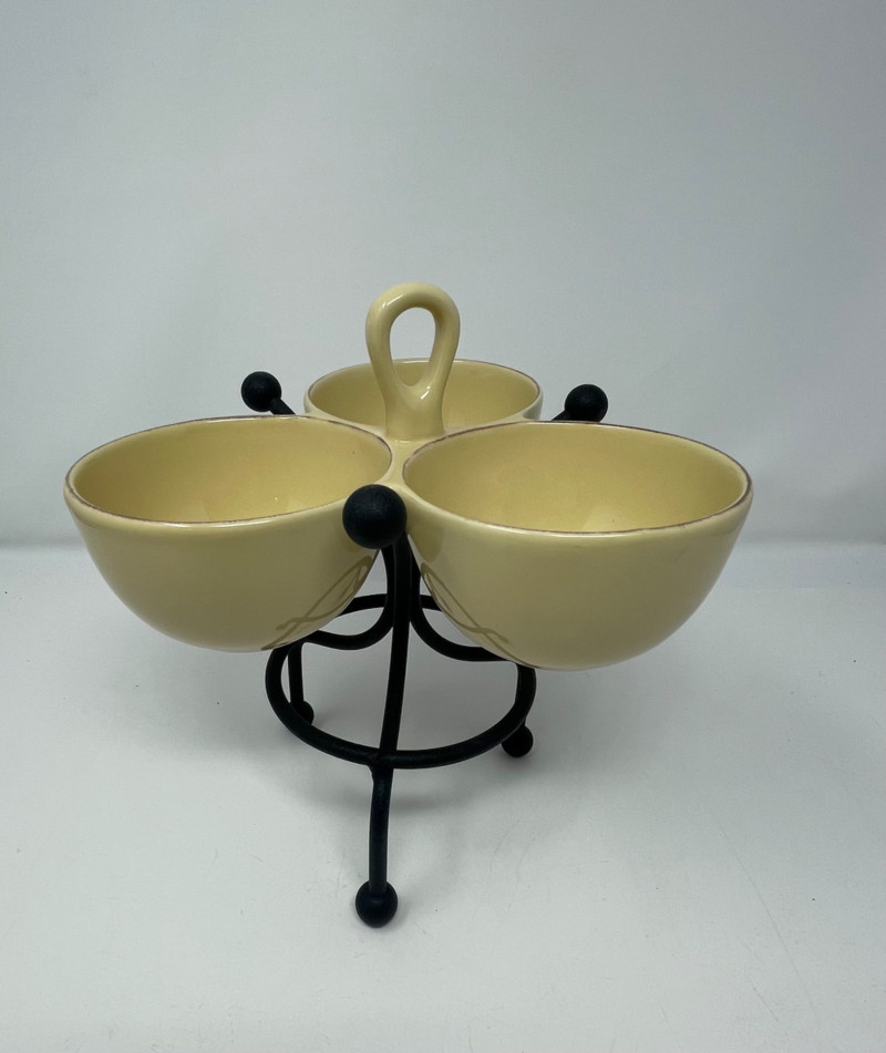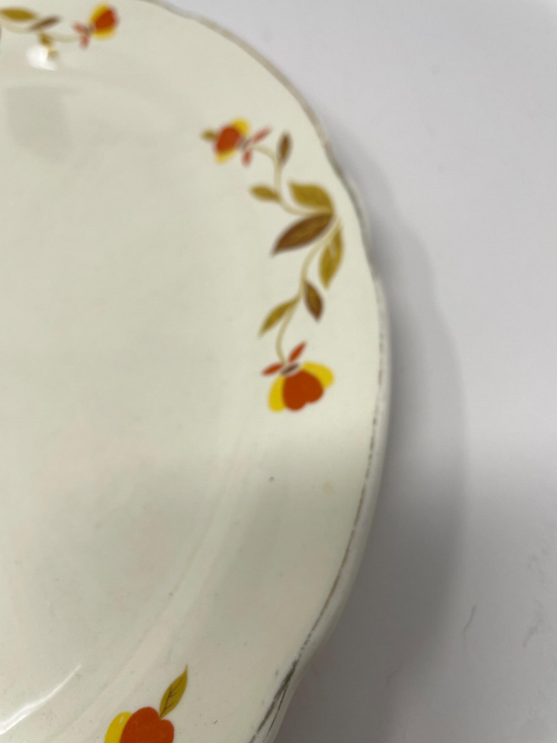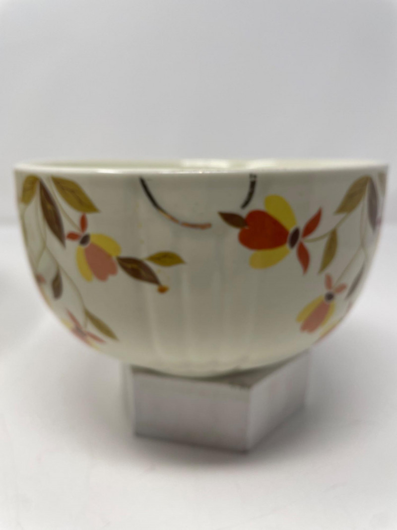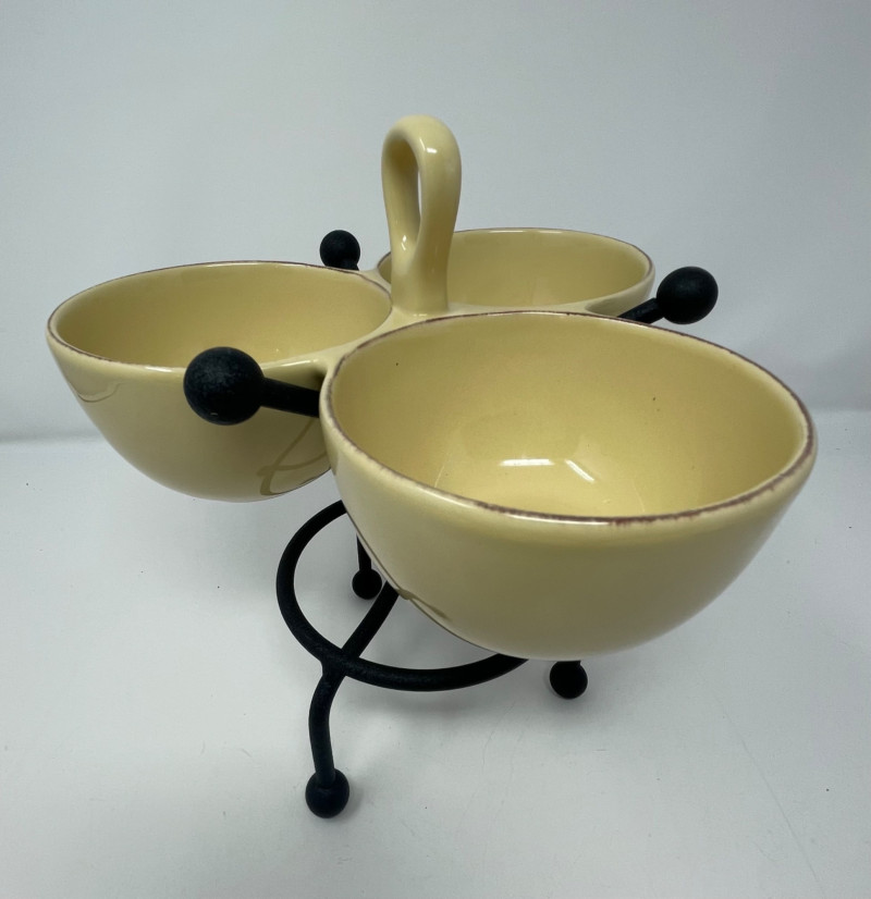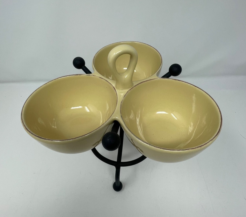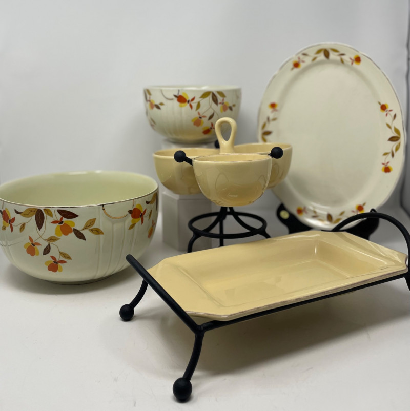 Hall’s Superior Bowls - Large 9” Round. Small 6” Round Plate (unmarked) Same Pattern as Bowl's - 11” x 9” Taste of Home Entertaining Dish on Black Stand 11 1/2” x 6” and Stand 4” H Taste of Home Entertaining Snack Dish on Black Stand 9” H x 8” on the Stand