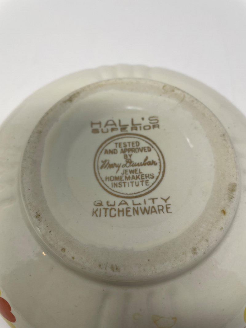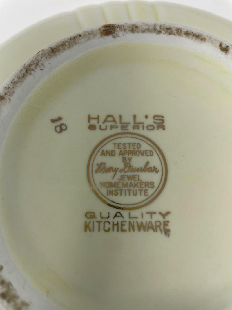 History: Many pieces carry a stamp on the bottom stating they were "Tested and approved by Mary Dunbar, Jewel Homemakers Institute".