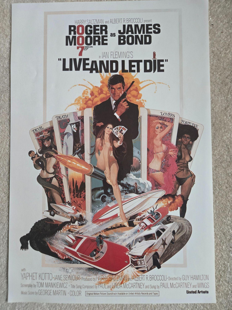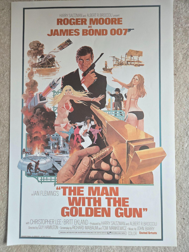 Approx 11" x 18" A dynamic pair of vintage‑style James Bond posters featuring Roger Moore in two of his most iconic 007 films. These decorative reprints showcase the bold, high‑energy artwork that defined the Moore era—explosive action, exotic settings, and the unmistakable swagger of Bond in the 1970s. Live and Let Die (1973)