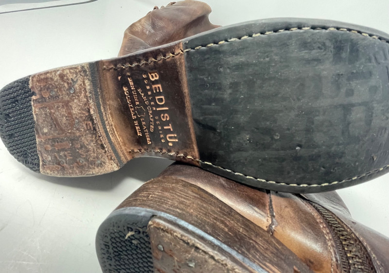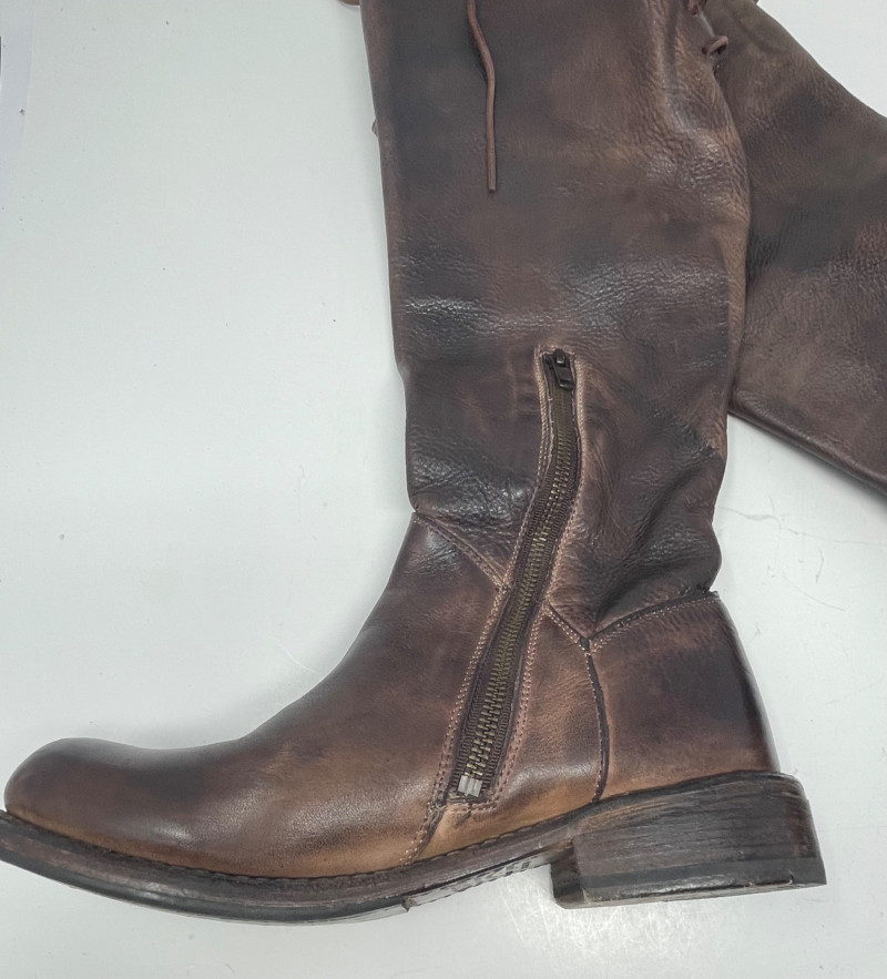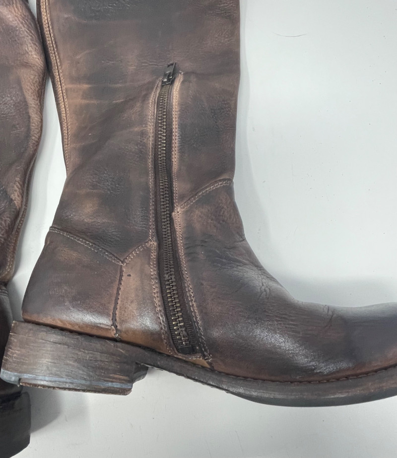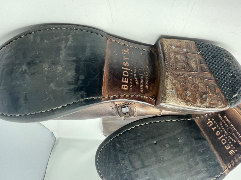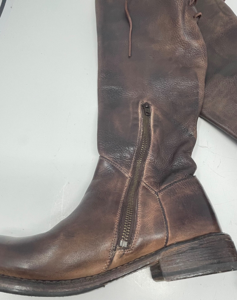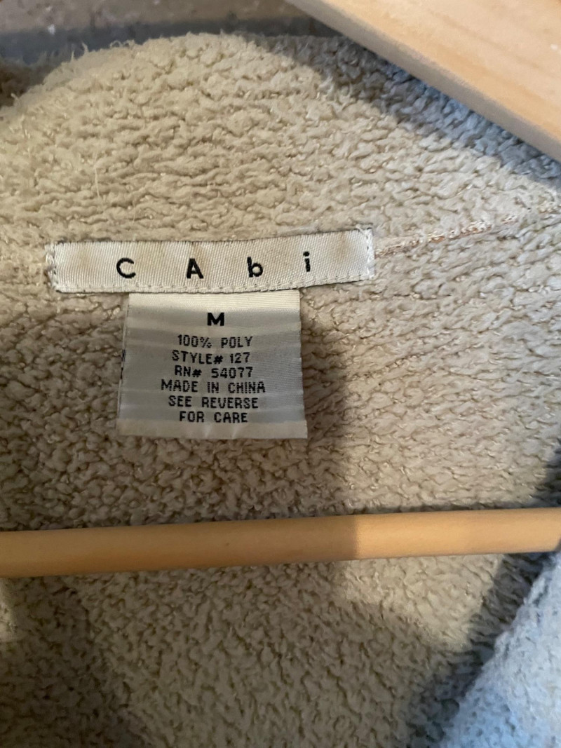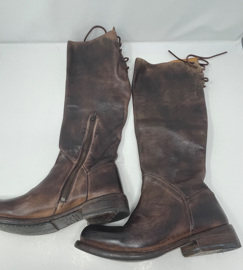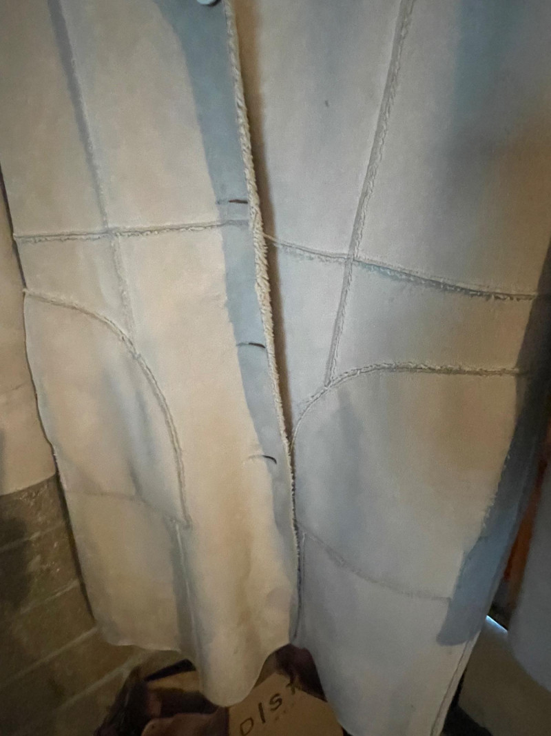 Distressed BED STU Manchester II Style Woman’s Boots In Teak Rustic color and Size 7 Woman’s Cabi Cream Knee Length Jacket size Medium. Bed|Stü Manchester II tall leather boots in the color Teak Rustic, part of their Cobbler Series Design: Features a classic round or almond-shaped toe, a half inner-ankle zipper for easy entry, and decorative leather lacing at the upper back shaft. Construction: Built with a durable Goodyear welt and a manhole-inspired rubber traction outsole. CAbi Faux Suede Shearling Coat (Style #127). It is a knee-length, beige coat featuring a soft faux suede exterior and a contrast faux shearling (sherpa) lining.