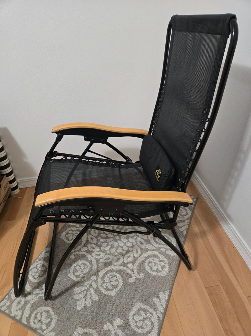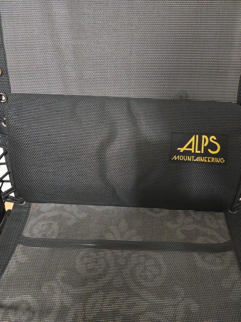 A comfortable and durable lounge chair by Alps Mountaineering, designed for both indoor and outdoor relaxation. This model features a breathable black mesh seat and backrest secured with side lacing for added flexibility and support. The chair includes a padded headrest with the Alps Mountaineering logo and is built on a sturdy metal frame with wooden armrests for a balanced mix of comfort and structure. Its reclining design makes it suitable for camping, patios, decks, or casual indoor seating. Known for producing reliable outdoor gear, Alps Mountaineering combines ergonomic comfort with long‑lasting materials in this versatile chair. Condition Notes
