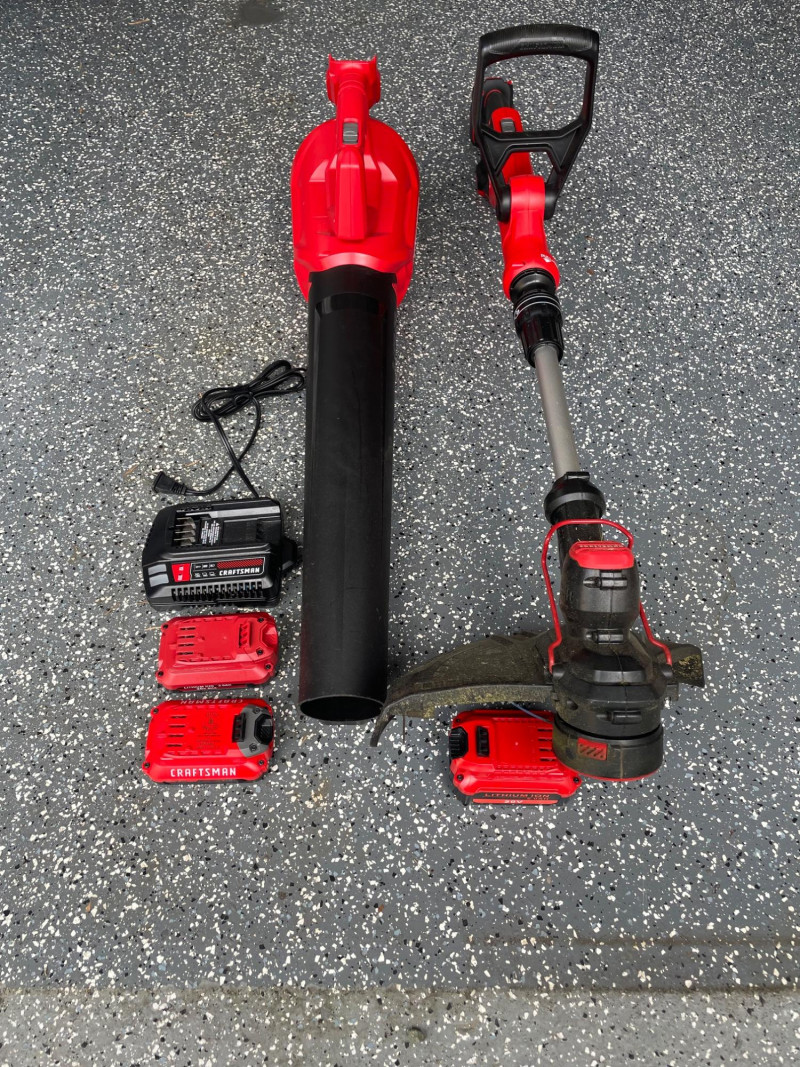 CRAFTSMAN V20 Cordless String Trimmer and Leaf Blower Combo Kit. Blower Features: Capable of clearing debris with air speeds up to 90 MPH Power Source: Operates on the V20 20-volt lithium-ion battery system.