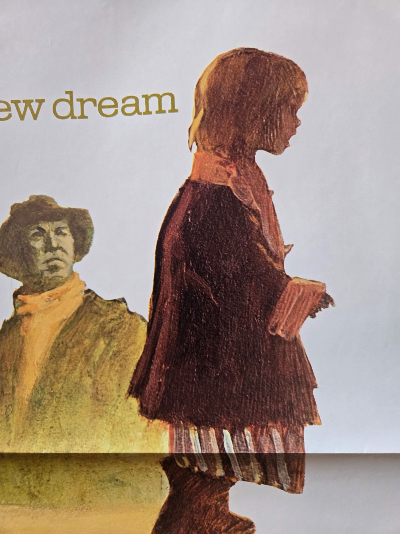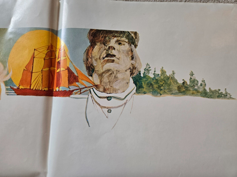 A beautifully illustrated vintage‑style movie poster for “The Emigrants” (1971), the acclaimed Swedish epic starring Liv Ullmann and Max von Sydow. This decorative reprint captures the film’s sweeping emotional journey—hope, hardship, and the search for a new beginning in America. The poster features expressive painted portraits of Ullmann and von Sydow set against a backdrop of emigrant life: a sailing ship at sunset, a wagon train, and settlers forging their path across a new land. The warm, earthy palette and detailed artwork evoke the film’s historical depth and human resilience. The tagline emphasizes the story’s emotional core: “a new land… a new hope… a new dream.” Starring Liv Ullmann & Max von Sydow Screenplay by Jan Troell & Bengt Forslund Based on the novel by Vilhelm Moberg Produced by Bengt Forslund Directed by Jan Troell A Svensk Filmindustri Production Released by Warner Bros. Technicolor • English Subtitles Rated PG Visible creases, see photos Unframed“The Emigrants” w/ Liv Ullmann Movie Poster