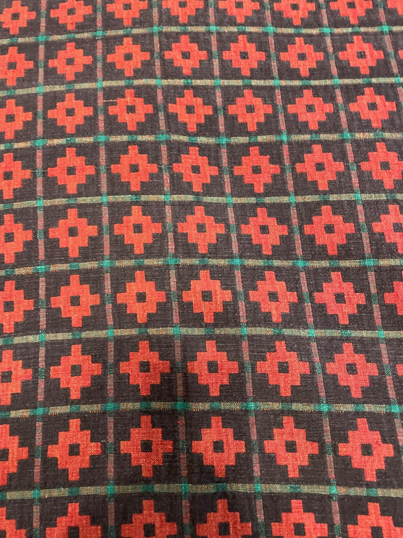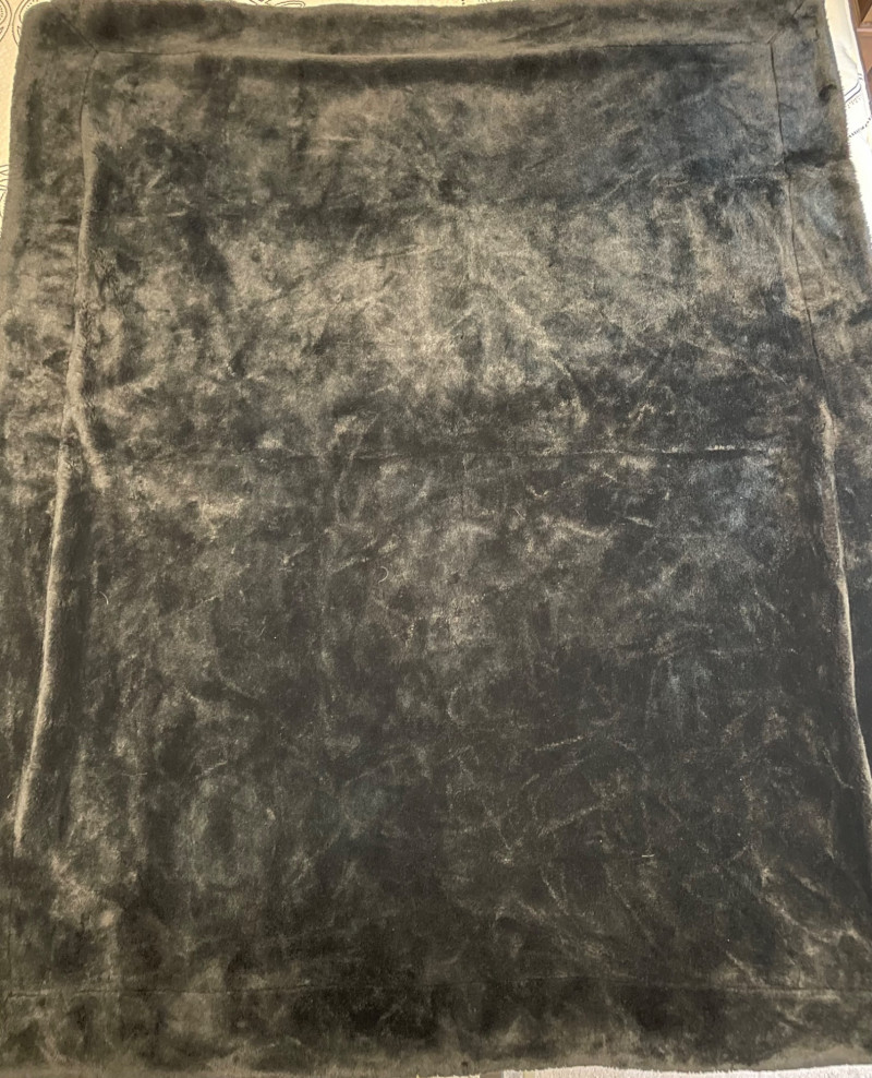 Collection of textiles, including a patterned fringed throw reminiscent of the Soho Home Erin throw, a quilted brown puffer-style throw, and various faux fur throws similar to options from Dennis Basso or other luxury retailers. Black Throw 49" x60" Brown Puffer Throw 58" x68" Brown & Cream Faux Throw 49" x 60" (total 2 in this lot) Red Multi Color Throw approx. size 67" x110"