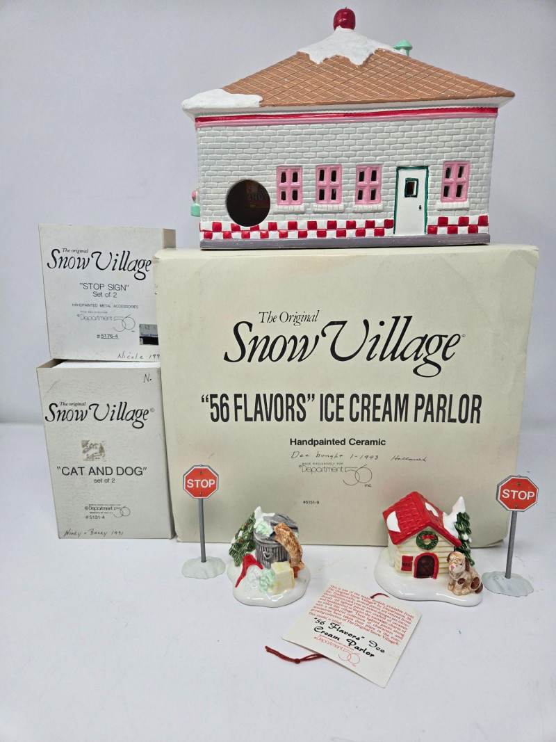 Lot # 150 - Dept50 SV '56Flavors of Ice-cream', 2xStop Signs & 'Cat and Dog'