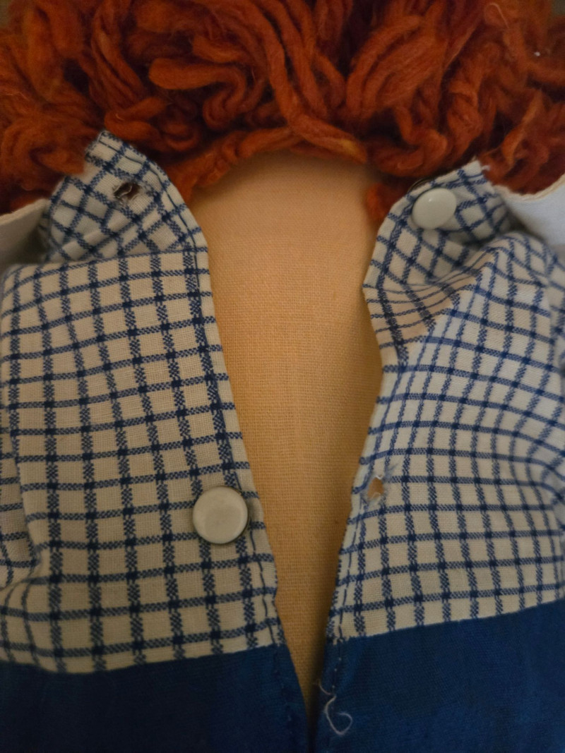 From the provided image, both dolls appear well cared for, with bright colors and intact clothing. Minor signs of age consistent with gentle handling or display may be expected, snaps on Andy's shirt are worn-please see photo. Both dolls are in way better shape than the ones currently for sale online (pictured).
