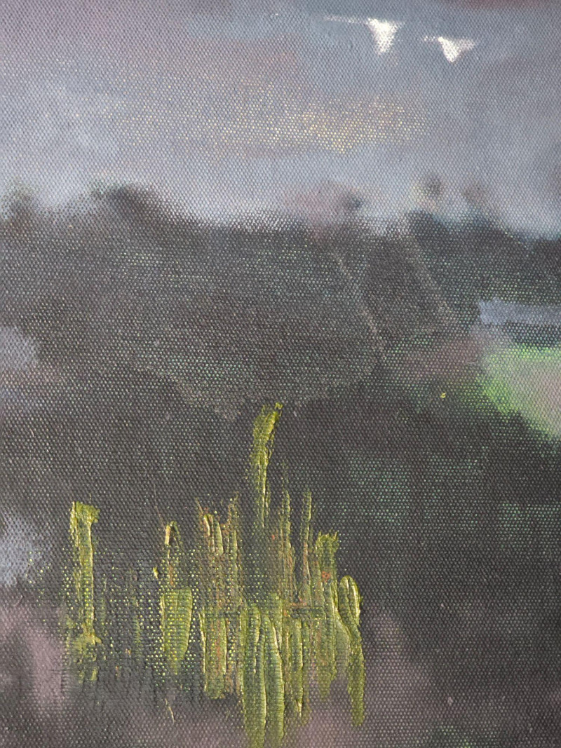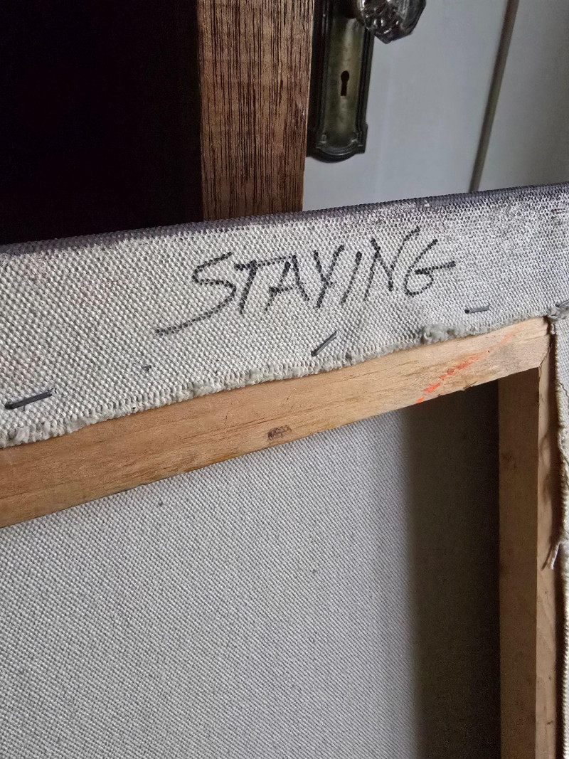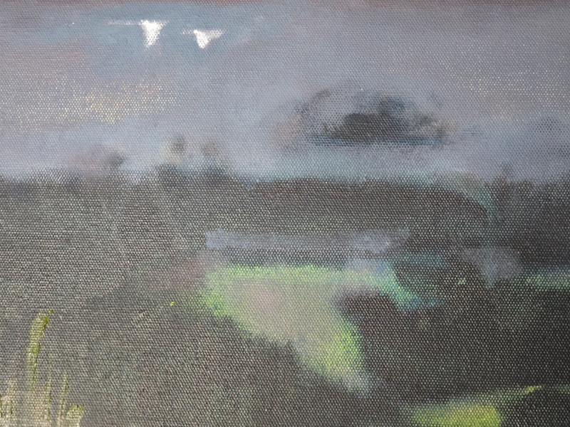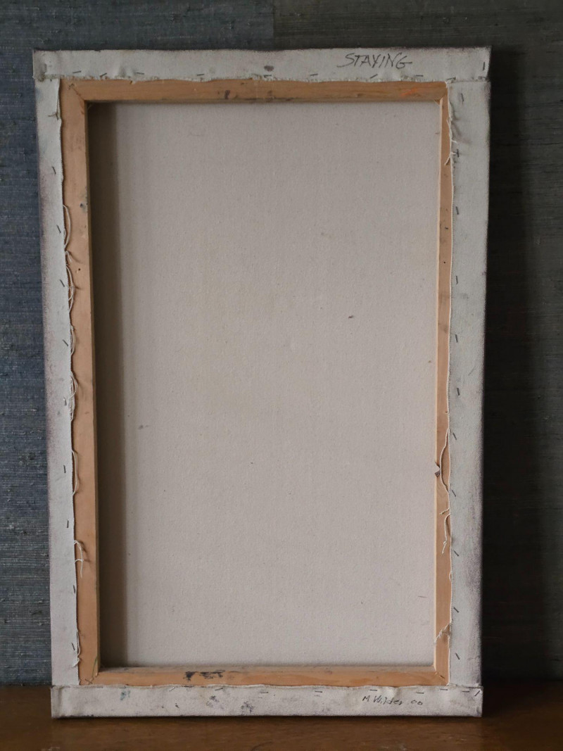 Offered here is Staying, an original abstract landscape painting by contemporary artist Maggie Wilder. The work blends gestural mark‑making with atmospheric color fields, moving between suggestion of landscape and expressive abstraction. Wilder’s layered brushwork and tonal contrasts create a sense of depth, movement, and shifting light that rewards close viewing. The painting is signed on the back of the canvas. Surface and edges show expected signs of handling consistent with display and age. A compelling piece for collectors of contemporary abstract work or those seeking a bold, textural statement artwork. About the Artist: