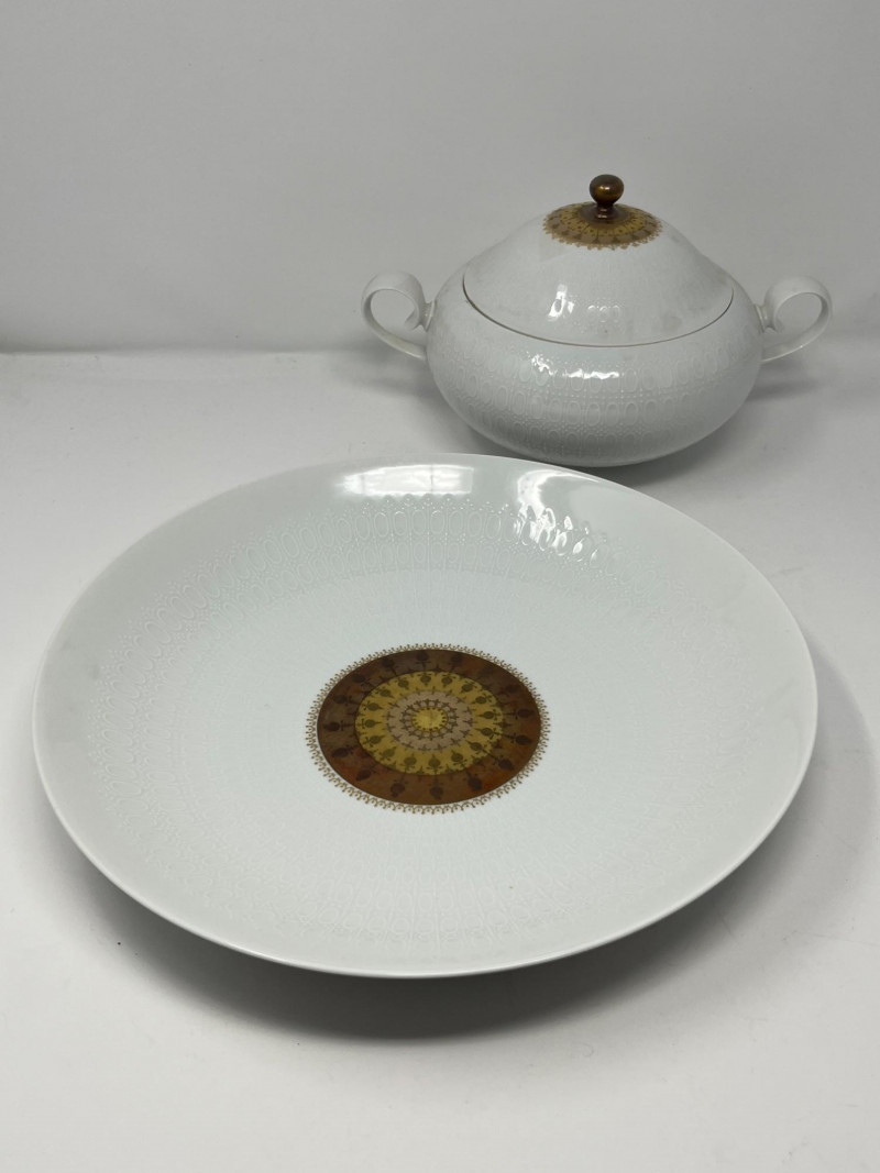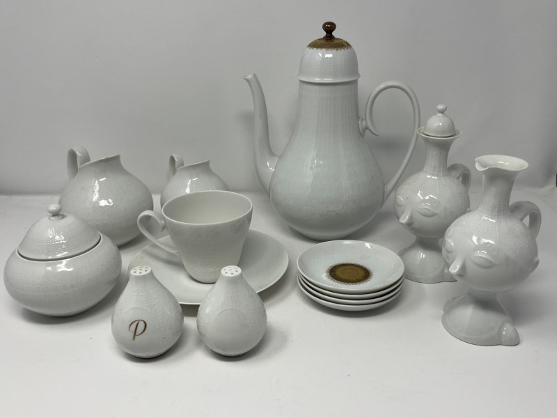 Lot # 38 - Rosenthal Germany Porcelain Set – Gold‑Center & White Embossed Pieces
