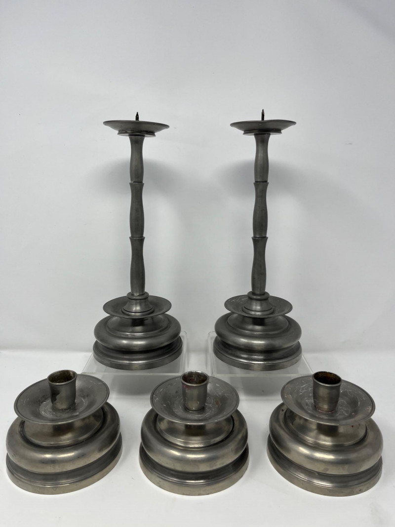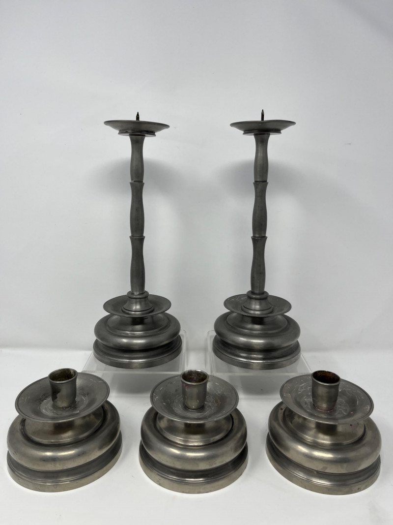 Lot # 81 - Set of 5 Vintage Pewter Candlesticks – Signed