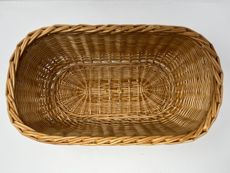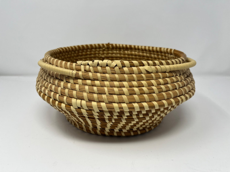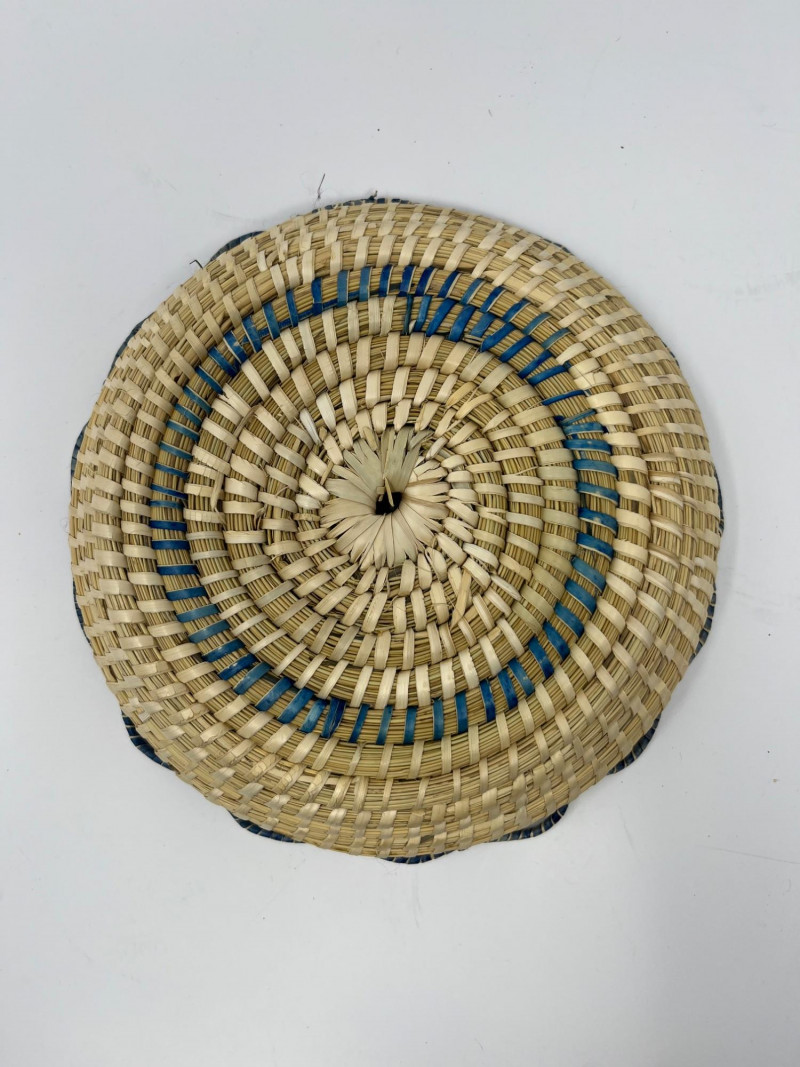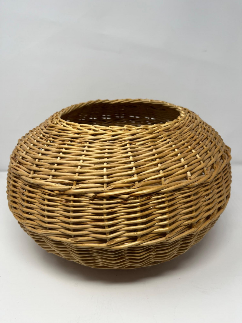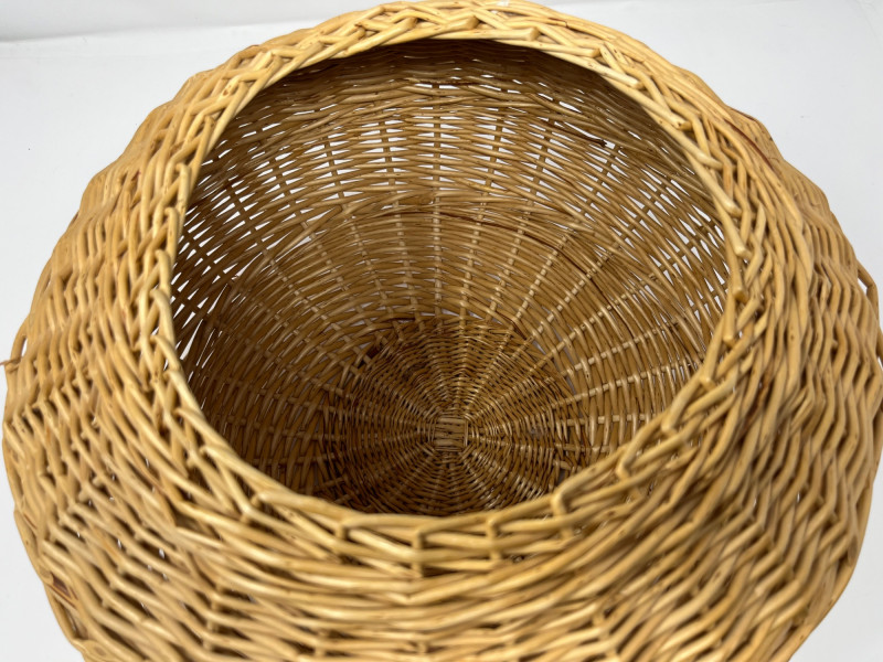 Collection of ten woven baskets in a variety of forms, weaving styles, and natural fiber materials. The lot includes round, oval, lidded, handled, and shallow tray-style pieces, each showcasing different construction techniques and patterns. Colors range from natural neutrals to select pieces with dyed accent weaving. Ideal for décor, storage, display, or prop use. Light surface wear consistent with age and handling. A versatile group for home styling or craft applications. NOTES