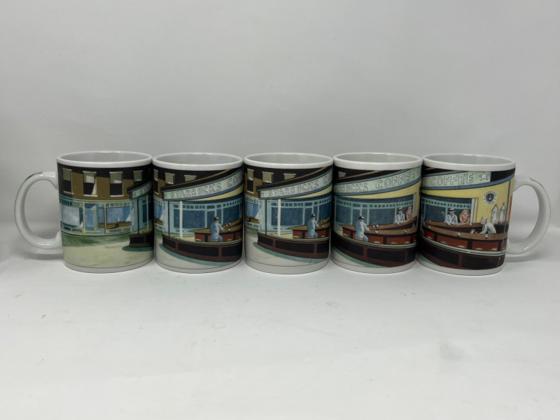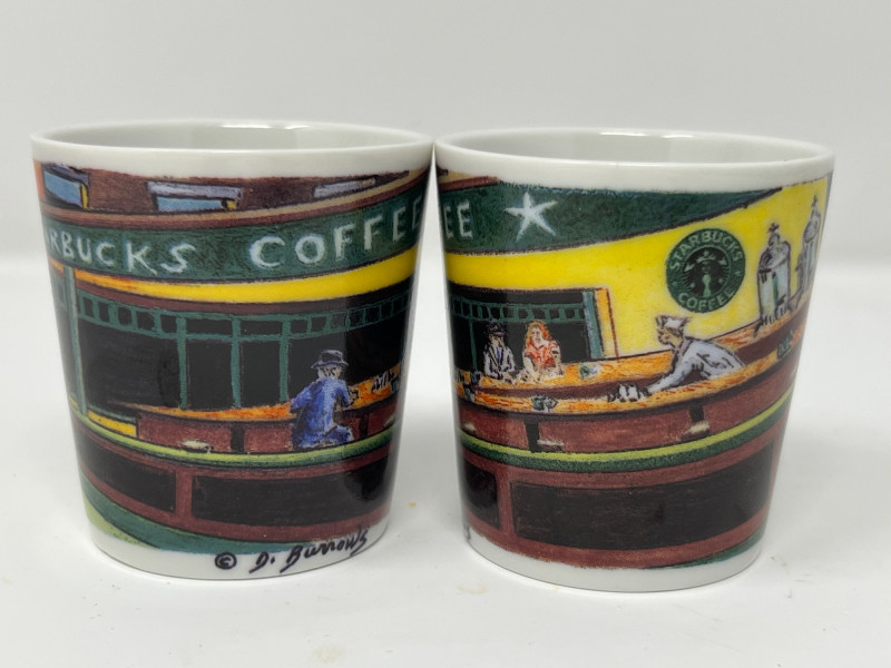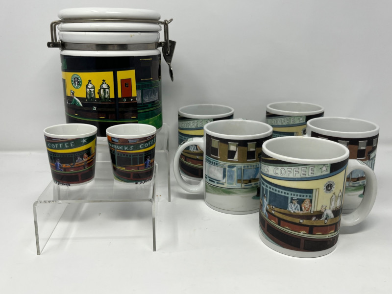 Lot # 96 - 90s Starbucks “Nighthawks” ‑Style Ceramic Set – Canister, Mugs & Shots