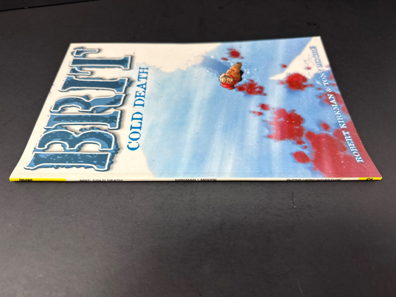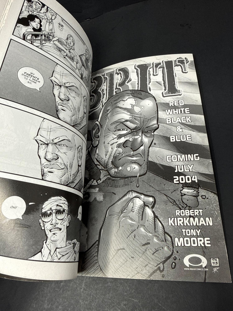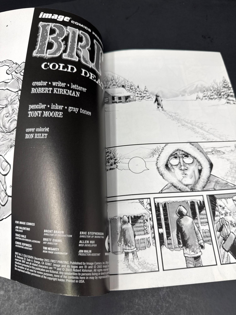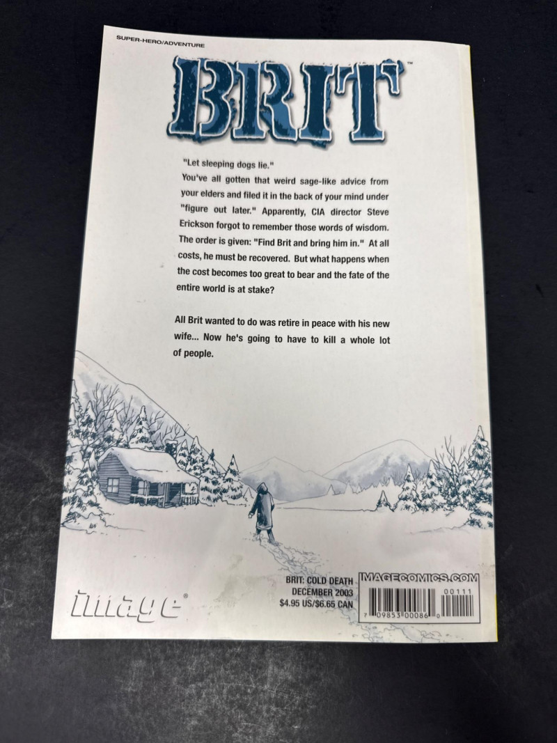 Brit: Cold Death #2 is a gritty superhero/adventure comic from Image Comics, created by Robert Kirkman with artwork by Tony Moore. Released in December 2003, this issue continues the intense and action-packed story of Brit, a hardened and nearly indestructible operative forced back into violent missions despite wanting a peaceful life. The comic features strong black-and-white interior artwork paired with a striking full-color cover, making it a great piece for collectors and fans of early Kirkman work.