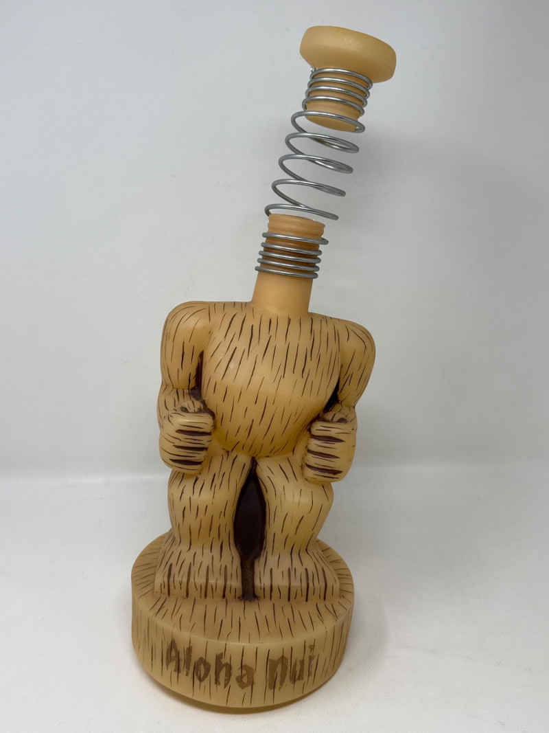 Funko Wacky Wobbler tiki-style bobblehead featuring a “shameful” character design with carved wood-look detailing and “Aloha Nui” text on the base. Made of plastic with a spring-mounted head. Stands approximately 17.5 inches tall. The interior support pole is slightly off-center, causing a slight tilt when displayed. Remains in great overall condition and displays well.