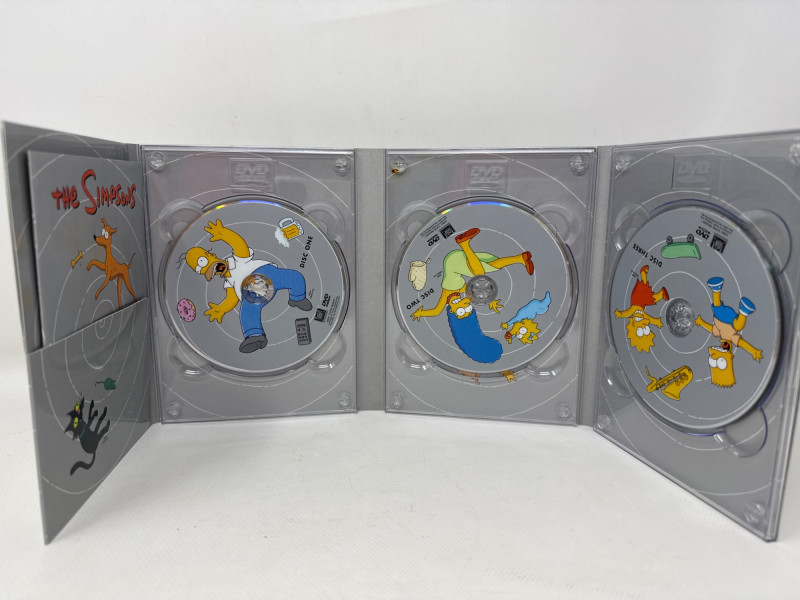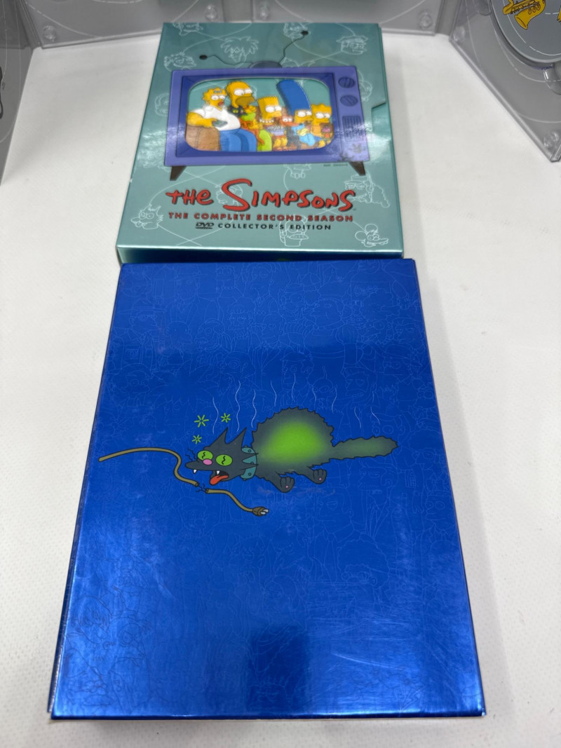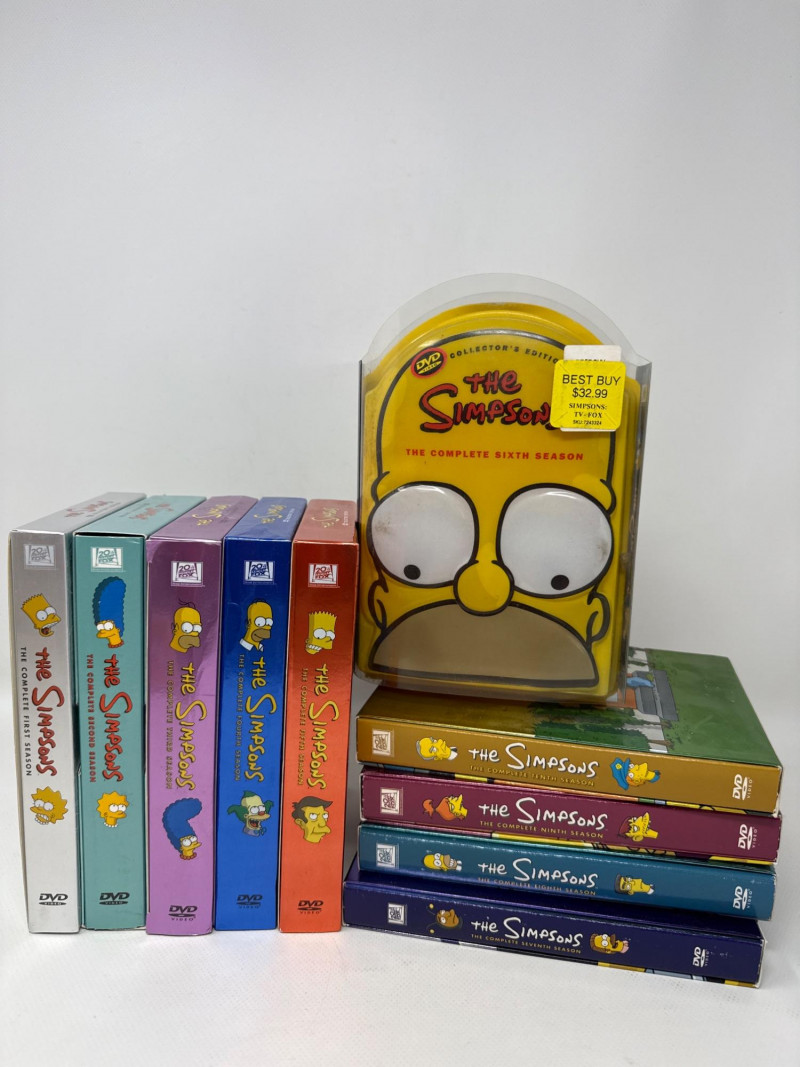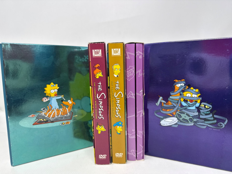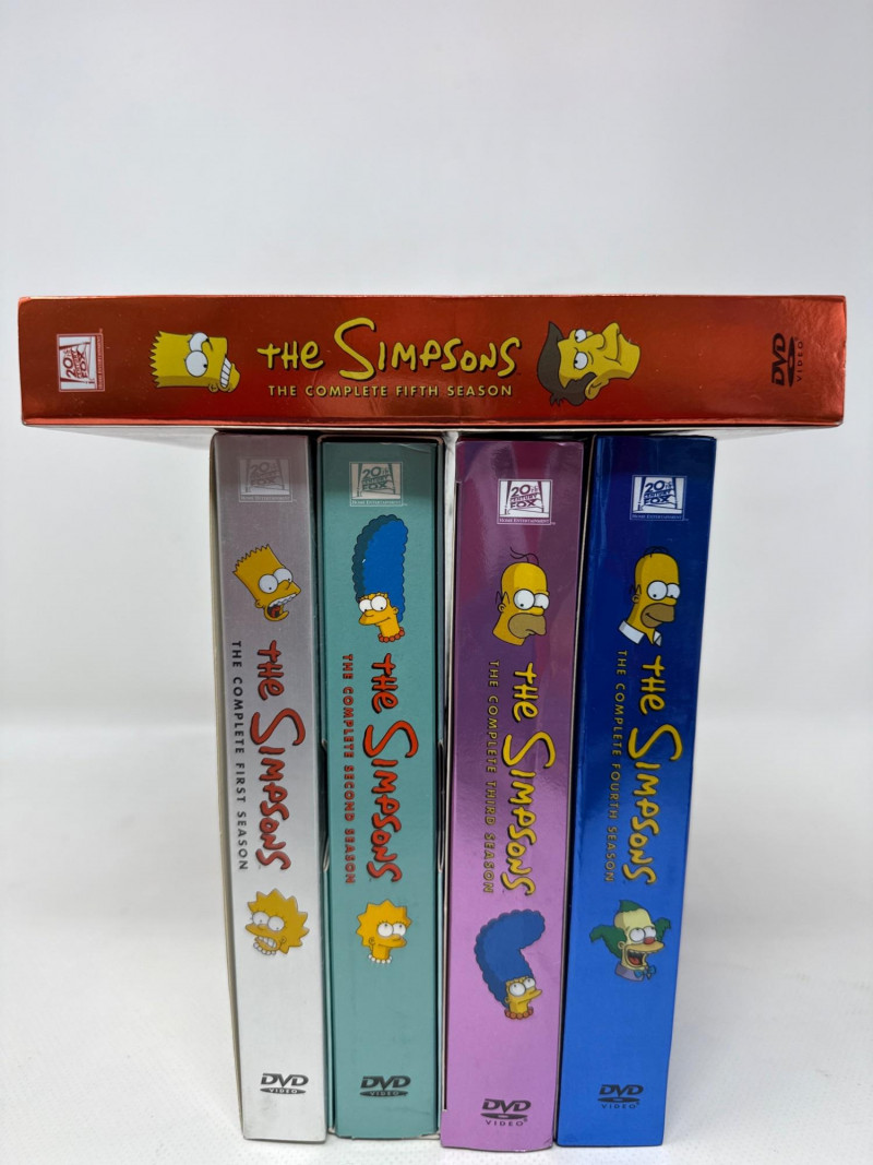 Condition: Box also appears clean and undamaged. A stacked collection of The Simpsons DVD box sets, each representing a different season. The spines are brightly colored and feature the show's logo along with character artwork.