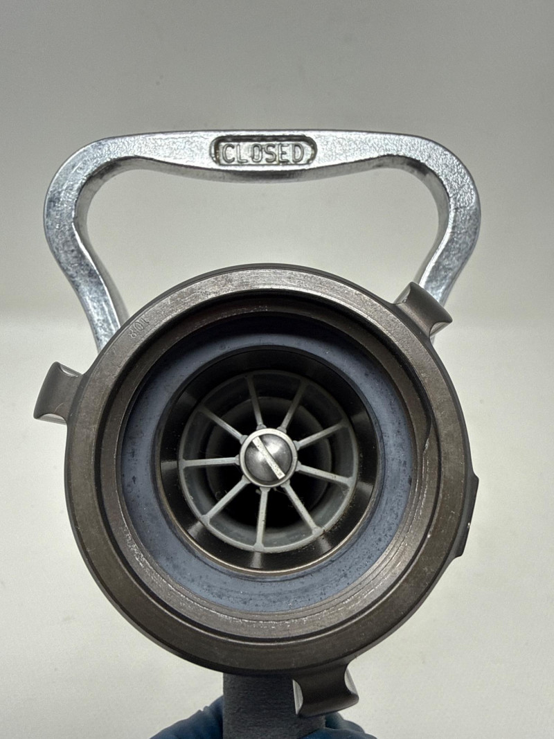 The main body is black, likely made of a durable composite or anodized metal designed to withstand high pressure and rough handling.