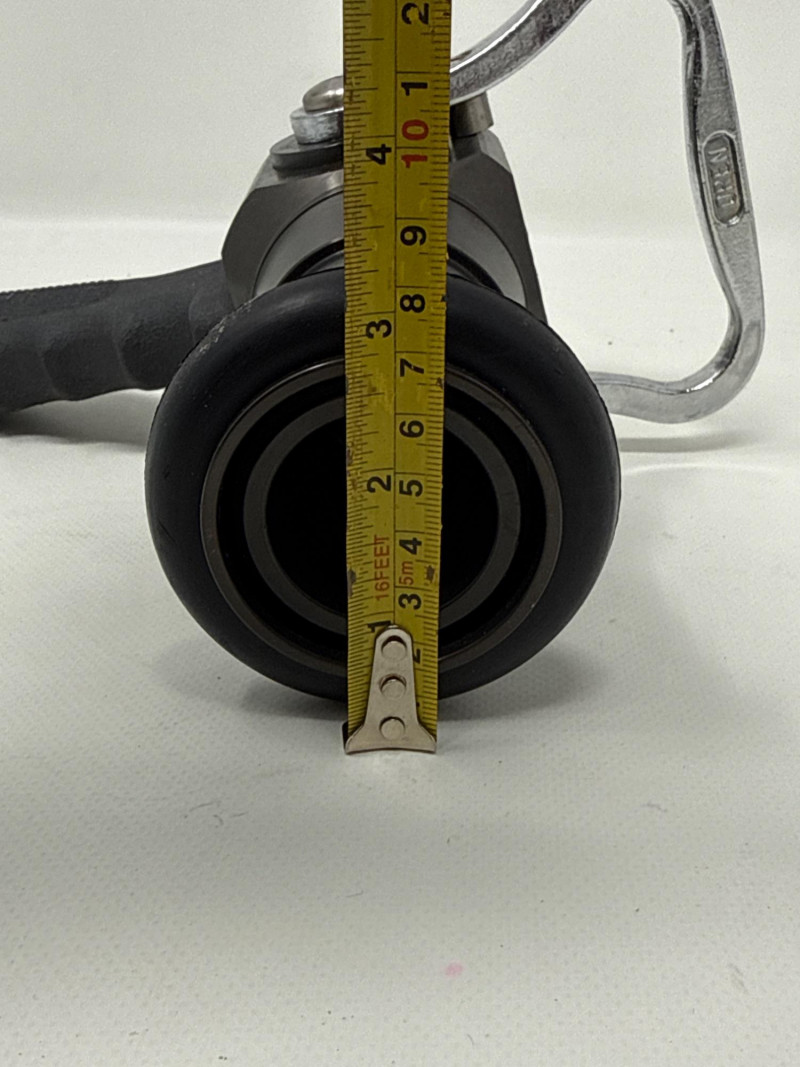 It has a textured grip section near the rear, allowing firefighters to hold it securely even with gloves or wet hands.