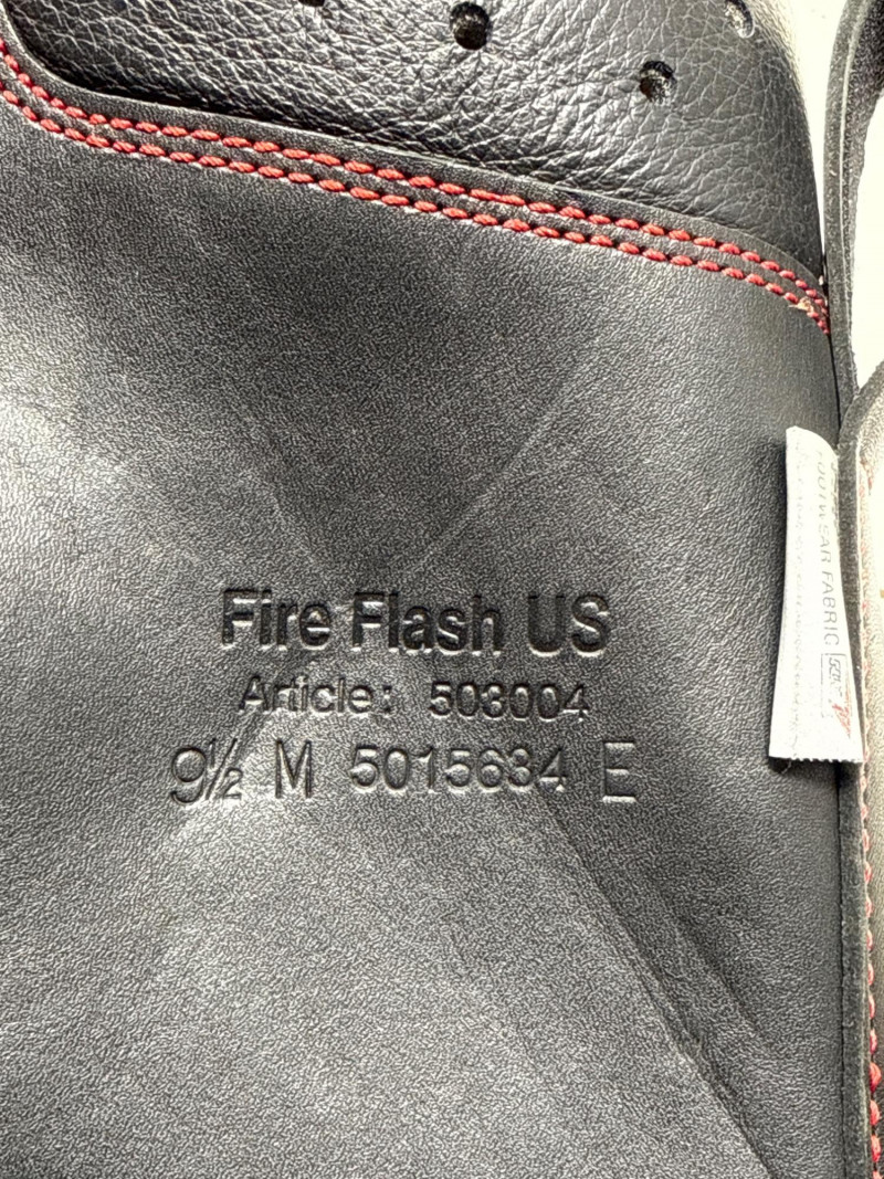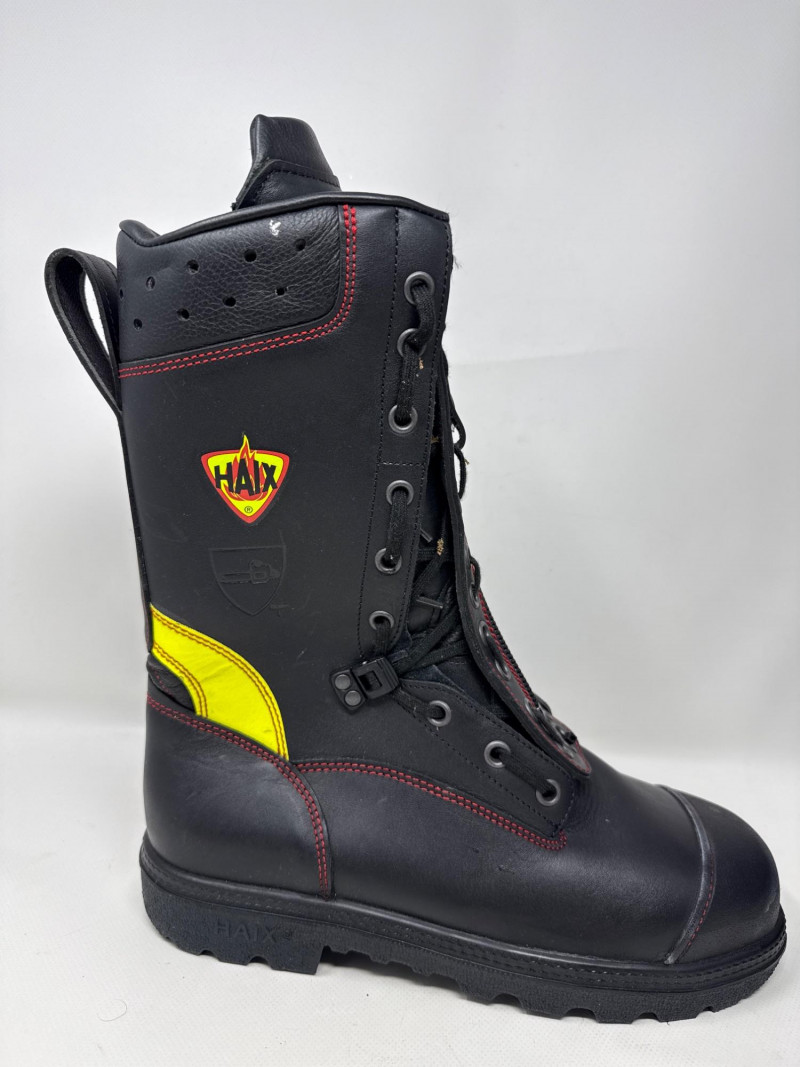 Authentic HAIX Fire Flash firefighter boots designed for professional structural firefighting. Built with high-quality black leather, these boots are known for their durability, protection, and comfort in extreme conditions. Size: US 9.5 (EU 43 / UK 8.5) – confirmed on both boots