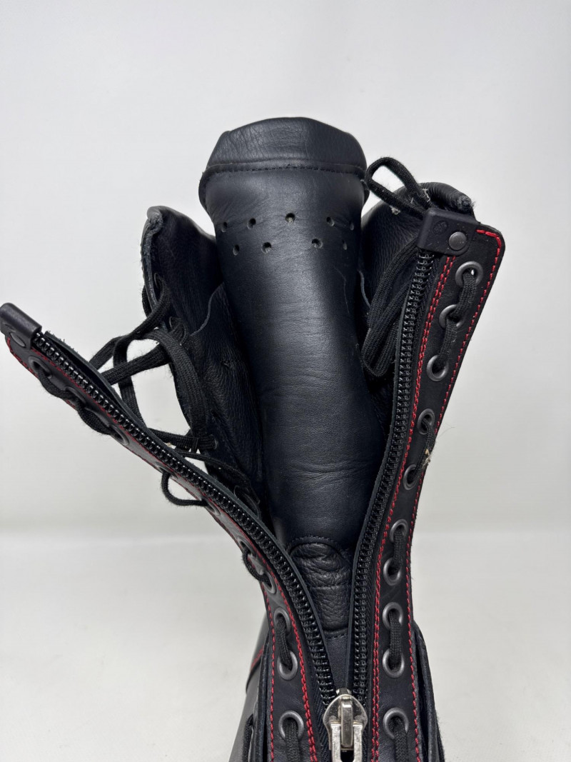 Closure: Lace-up with front zipper for quick on/off