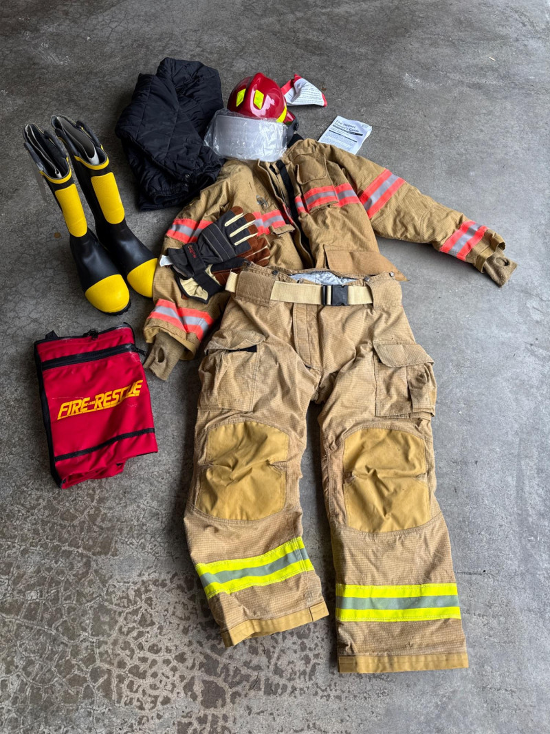 Lot # 35 - Firefighter Gear Set- Helmet, Boots, Turnout Gear and More