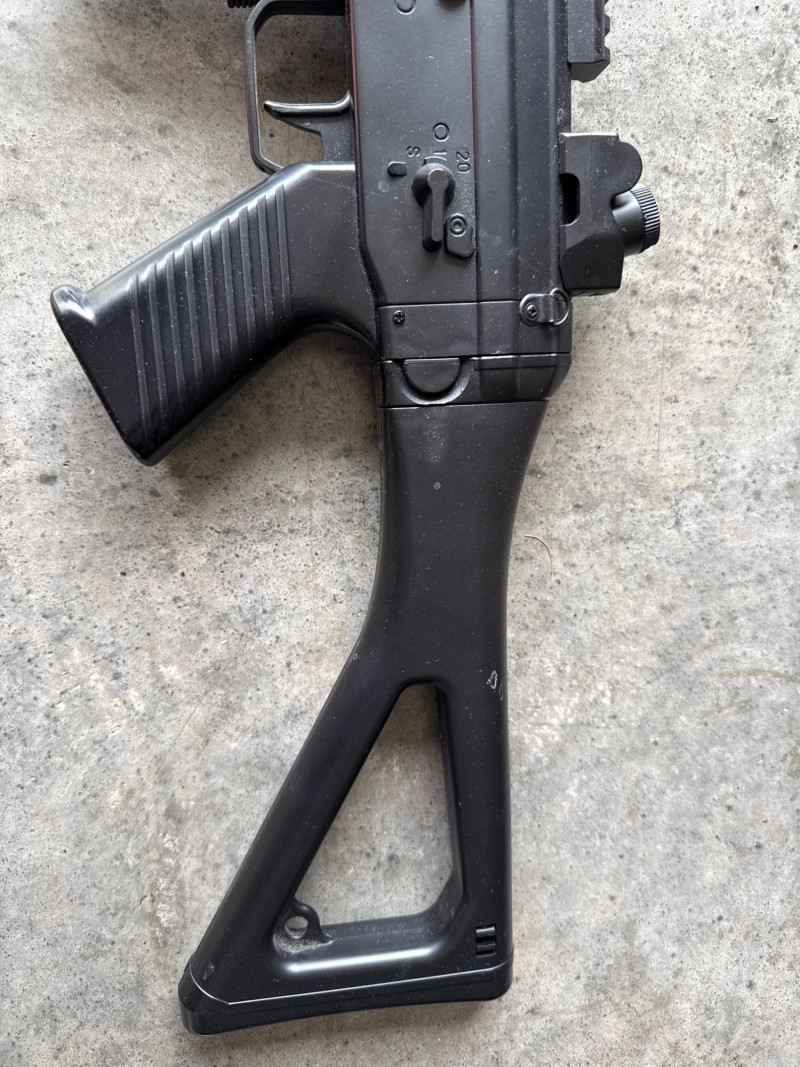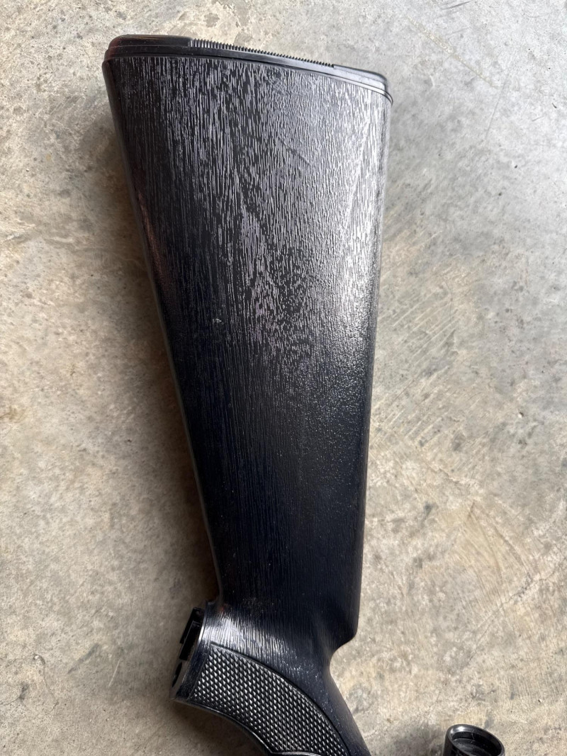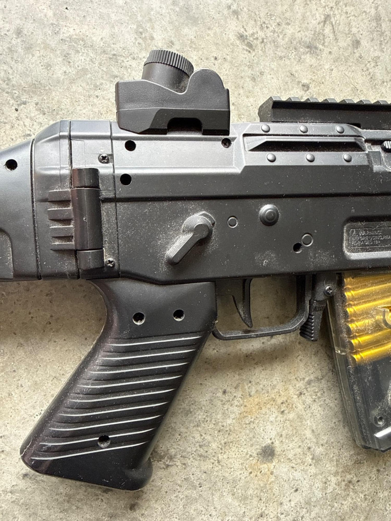 The body features molded details such as a trigger guard, stock, and grip, giving it a realistic silhouette. Magazine with Pellets