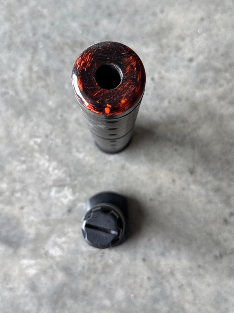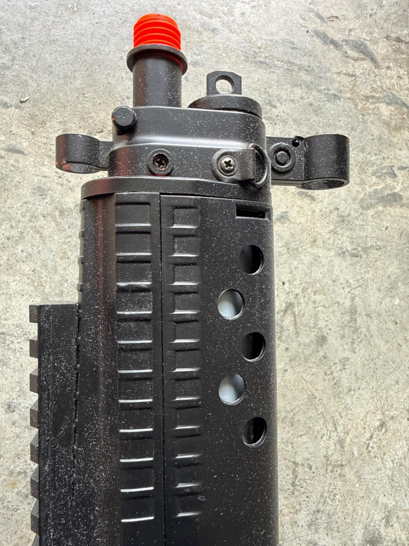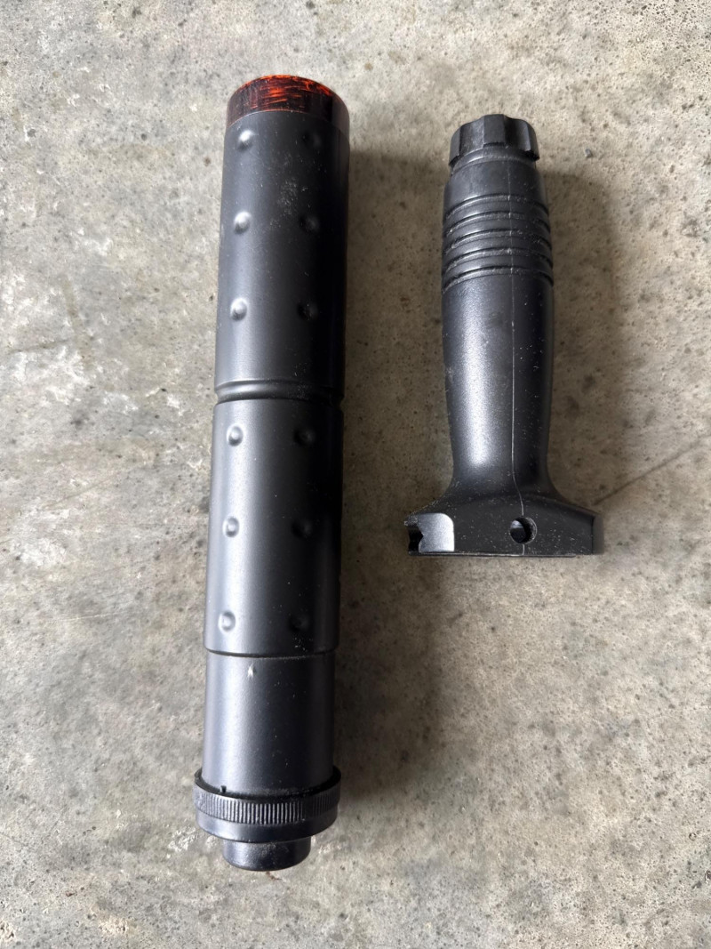 A long cylindrical attachment, likely intended to resemble a mock suppressor or extended barrel.