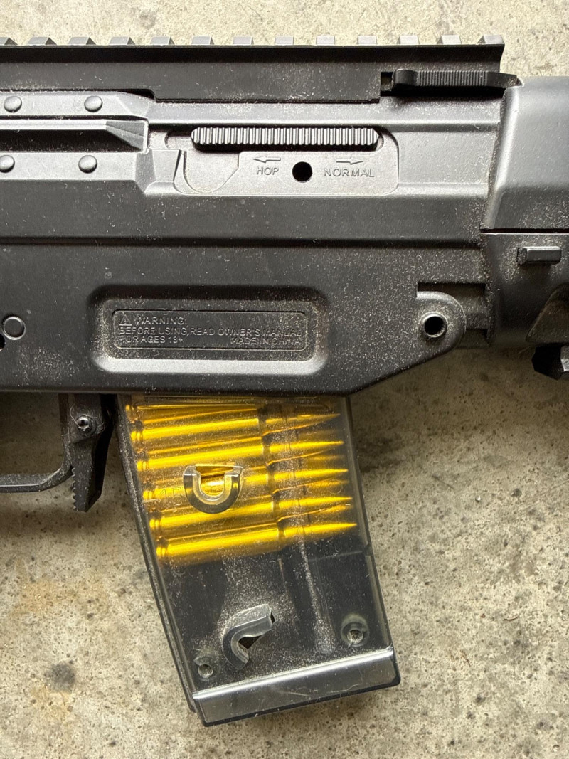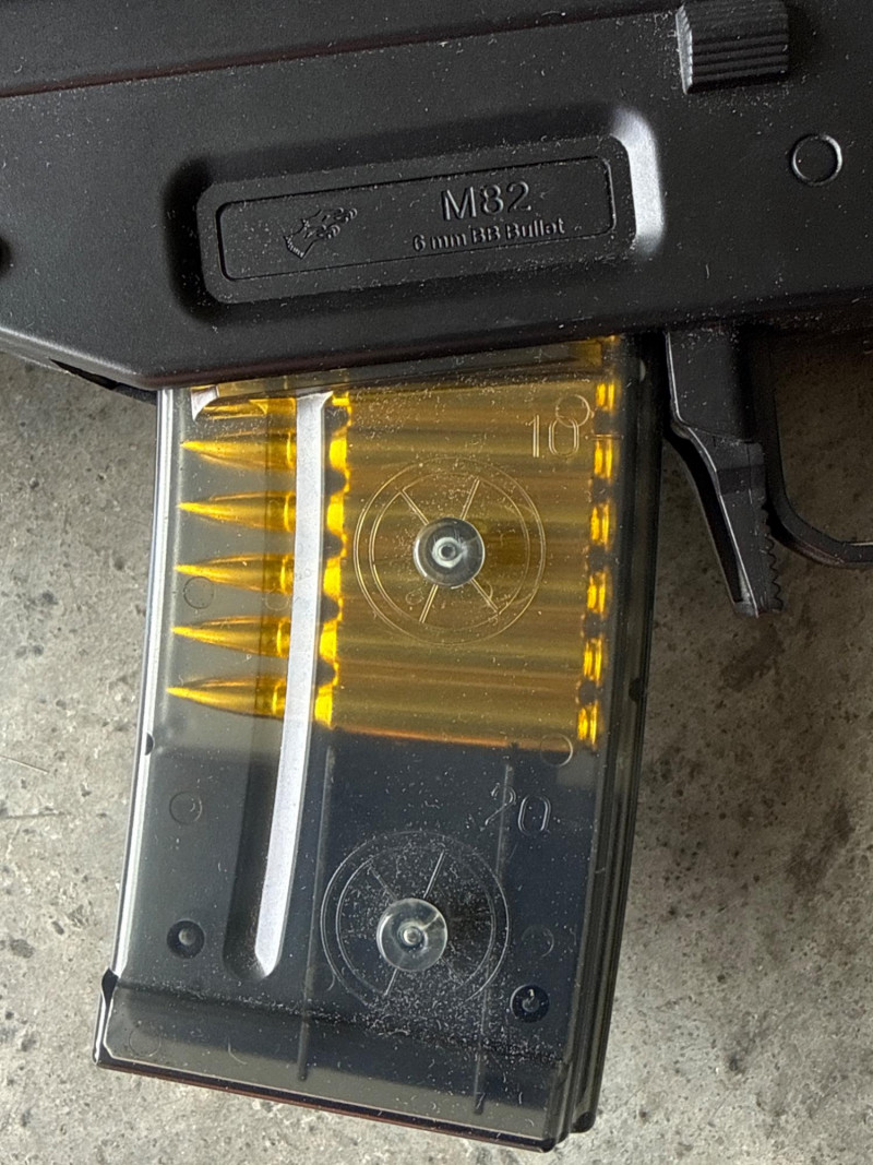 A detachable black magazine is included.