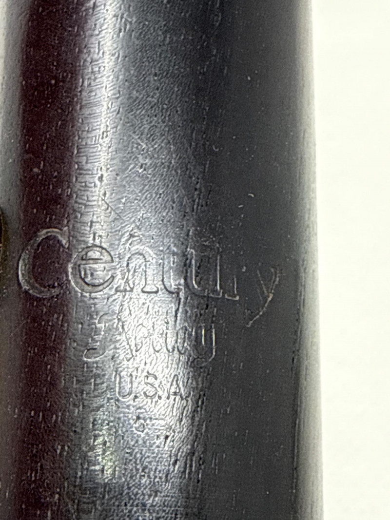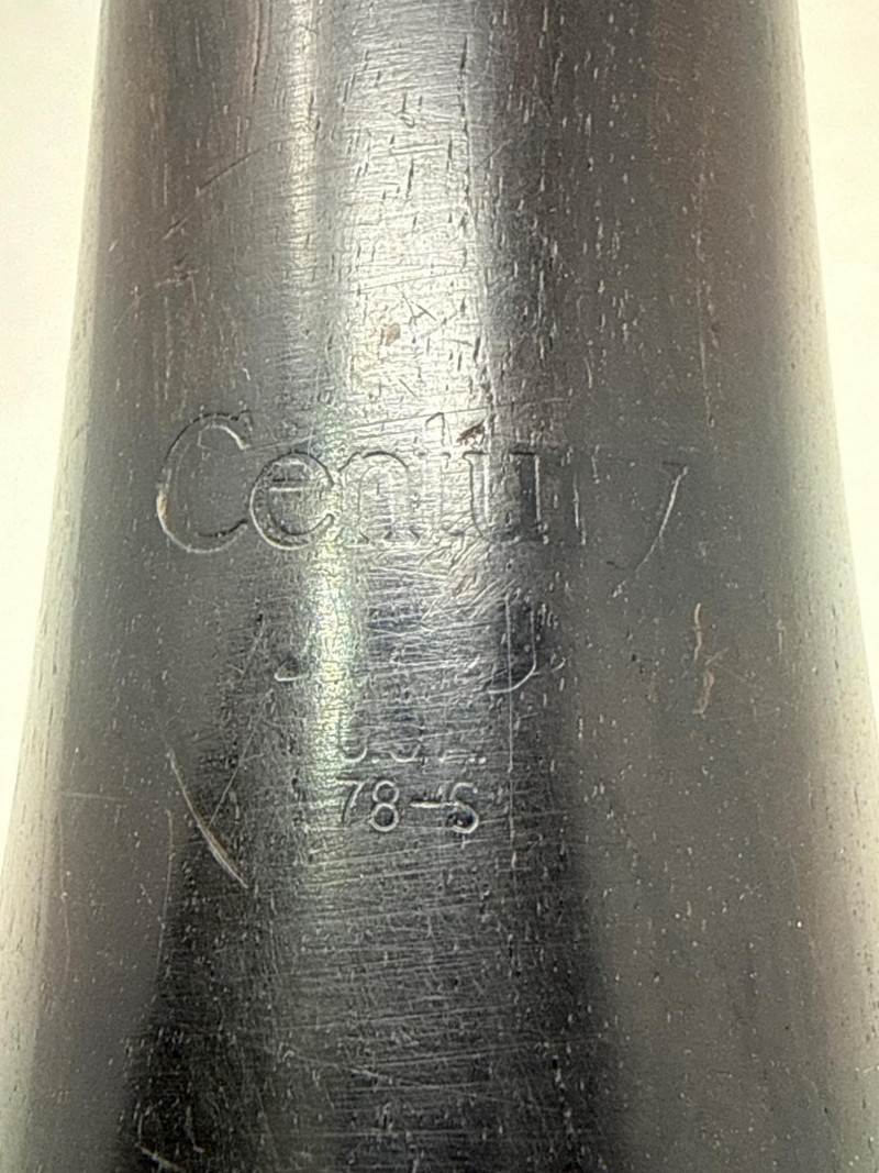 Vintage Artley “Century” Model 78-S clarinet, made in the USA. This is a student-level wood clarinet with silver-tone keywork, commonly used for school band programs. This item is a black Atley clarinet featuring a classic woodwind design with a smooth, matte‑finish body. The instrument is fitted with silver‑colored keys, rods, and rings, all of which appear clean and well‑aligned along the length of the clarinet. It includes a standard mouthpiece at the top and a flared bell at the bottom, giving it the traditional silhouette associated with student and intermediate clarinets.