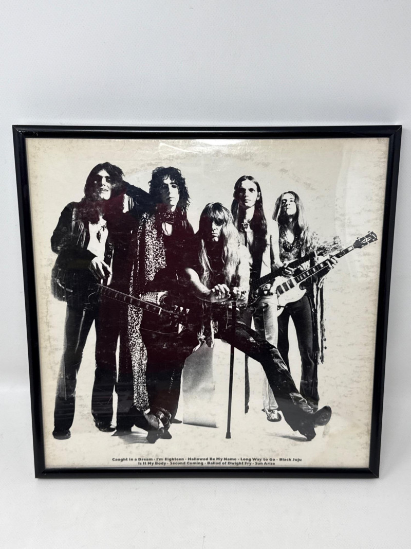 Certificate of Authenticity (Brad’s Autographs & Memorabilia) Vintage Performance Photograph – A framed retro‑style photo capturing the band in an early-era pose or performance moment, offering a glimpse into their iconic stage presence.