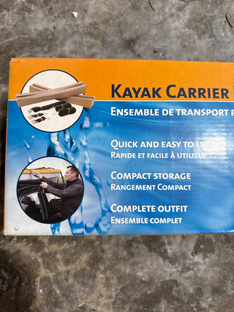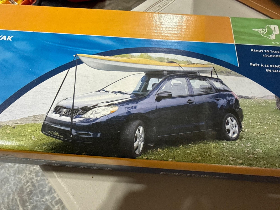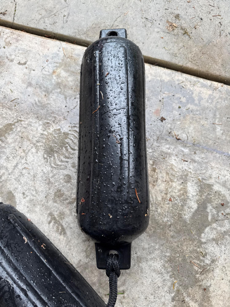 Two black floats tied together with a length of rope. NIB- Kayak transport carrier.