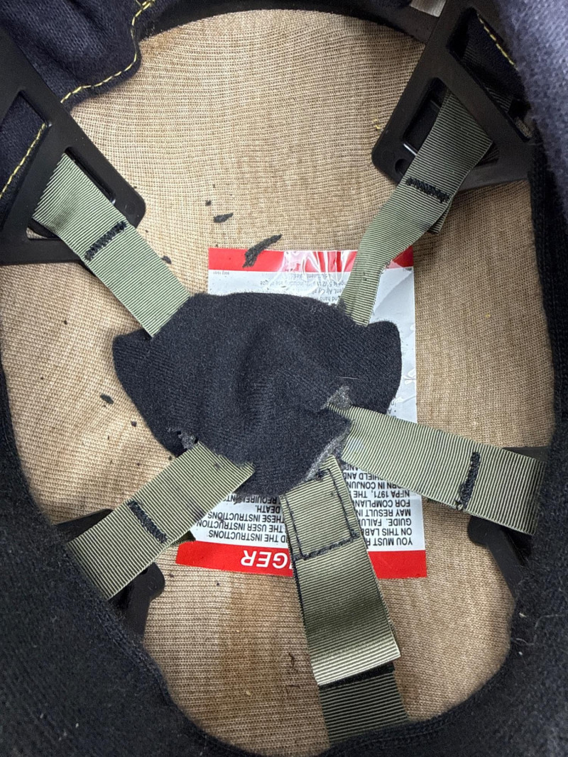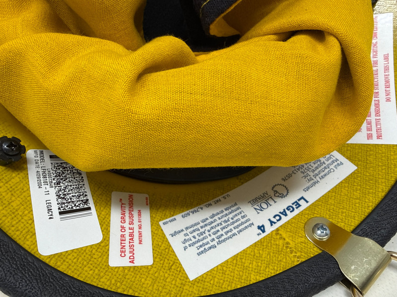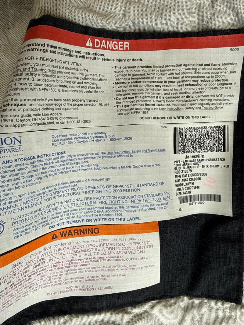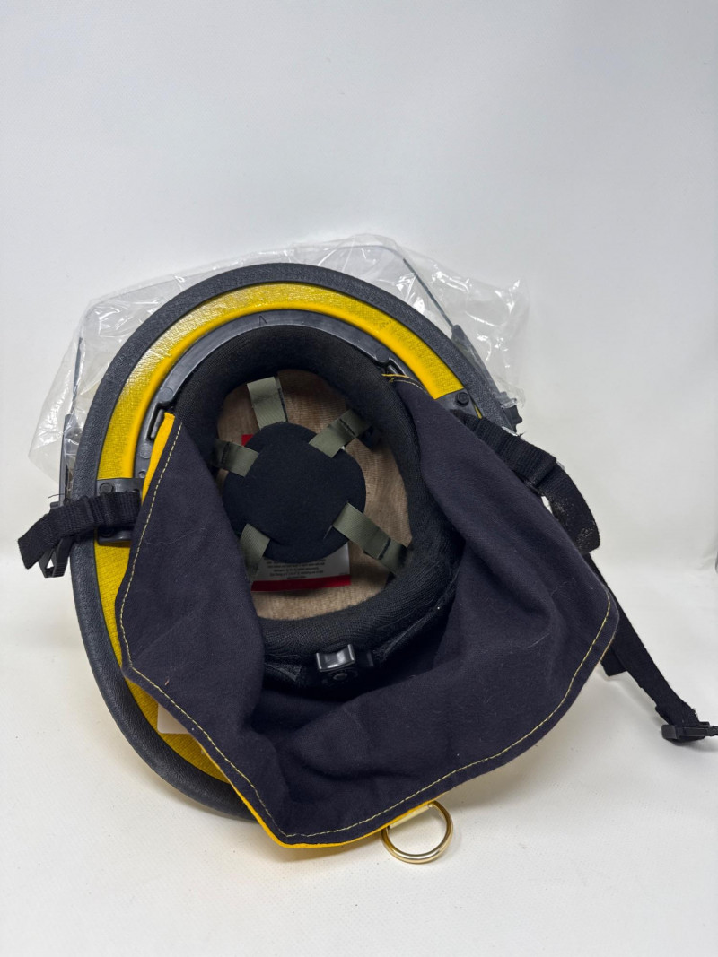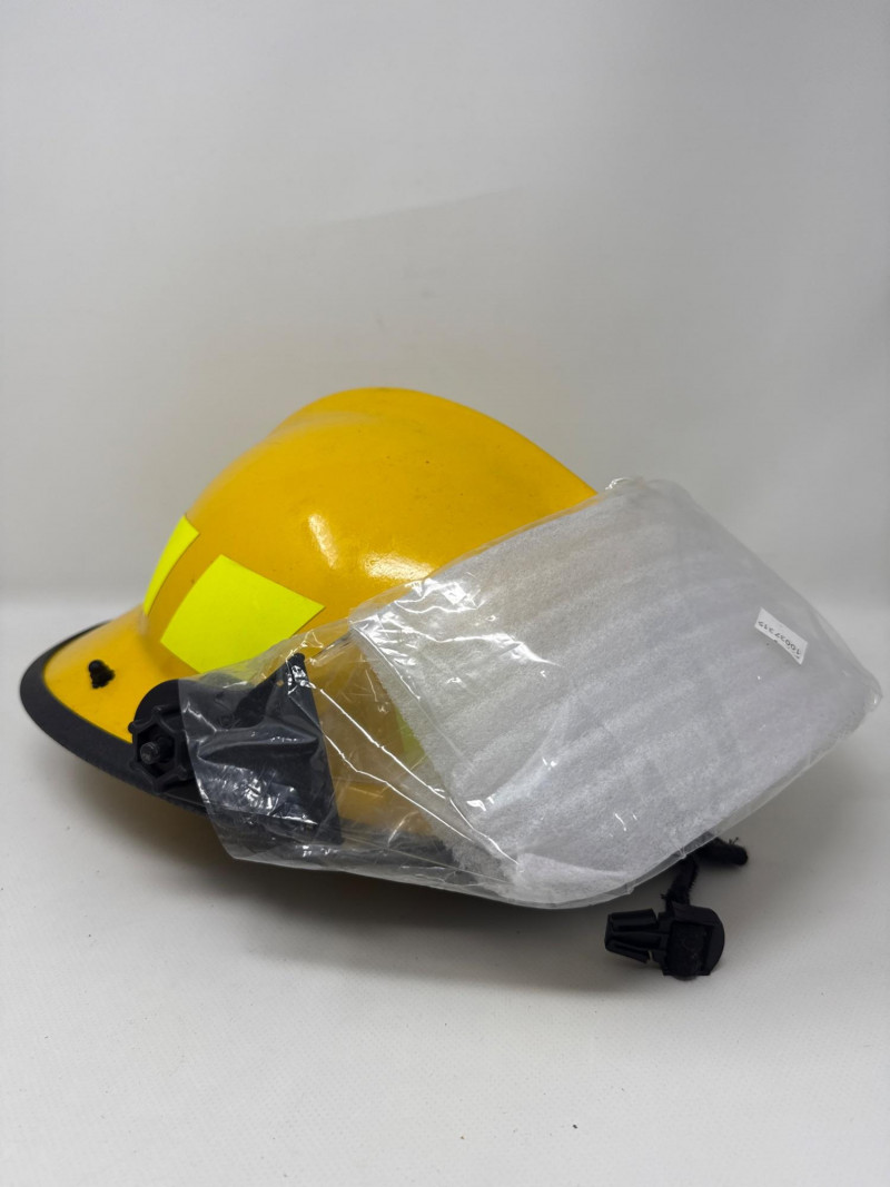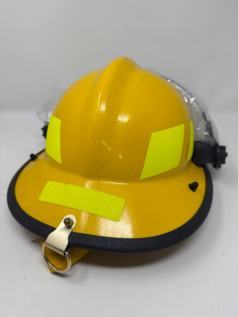 Complete personal Firefighter turn out safety gear set. This kit includes a turnout coat, pants, helmet, and additional accessories as shown. New or like new condition Important: This set does NOT meet current safety/code standards for active firefighting use. Sold strictly for collectible, training, costume, or personal purposes. The ensemble includes- Protective Jacket and Pants: Both pieces are tan, made from fire‑resistant material, and feature bright yellow reflective striping for visibility in hazardous conditions. Yellow Fire Helmet: Designed to protect against falling debris and heat. Suspender System: Black and like new. Red Equipment Bag: Clearly labeled “FIRE”, used for carrying essential tools or protective accessories.
