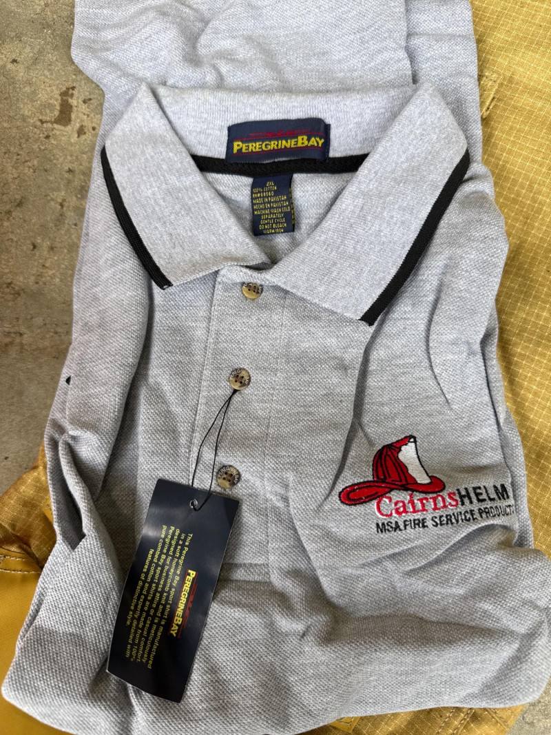 Gray Protective Hood: A flame‑resistant hood intended to protect the firefighter’s head, neck, and ears from extreme heat. Cairns promotional grey polo shirt-New