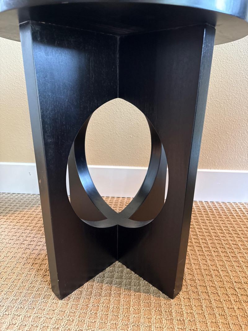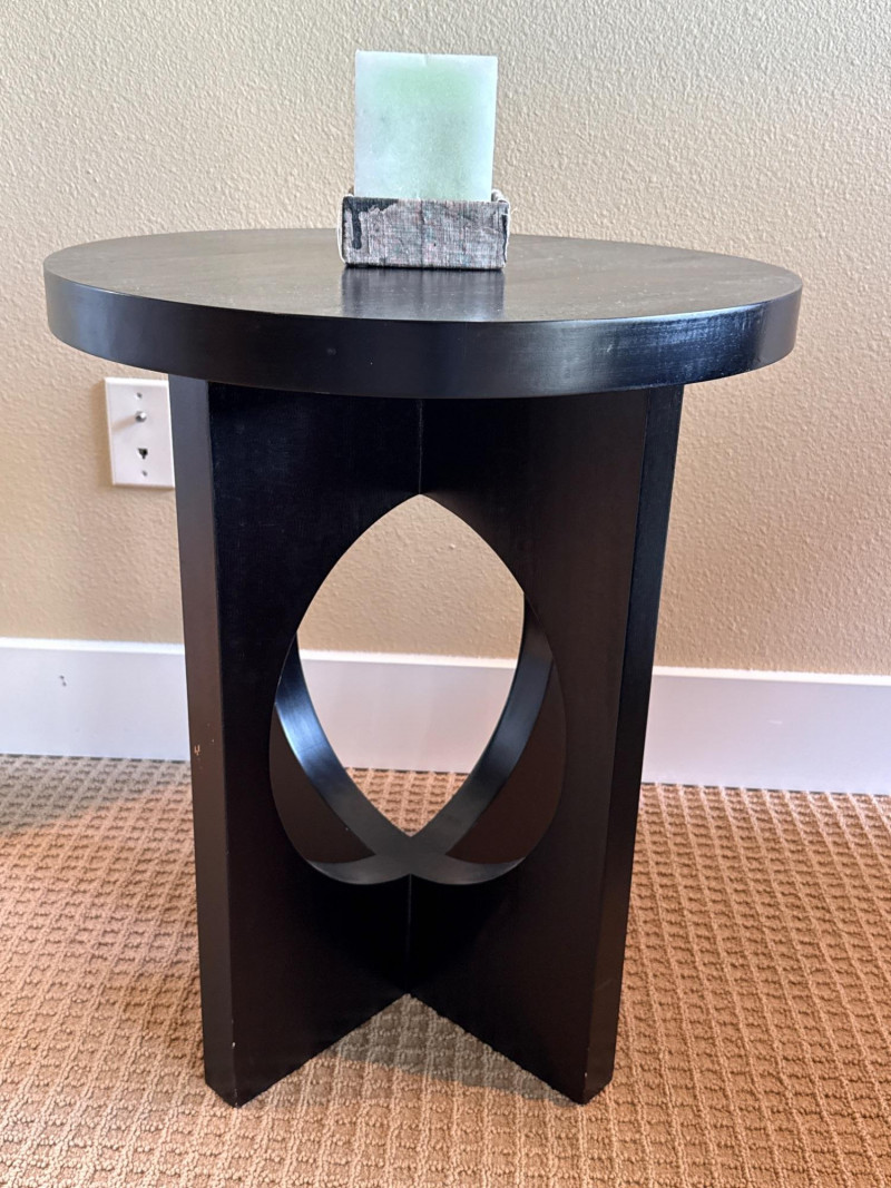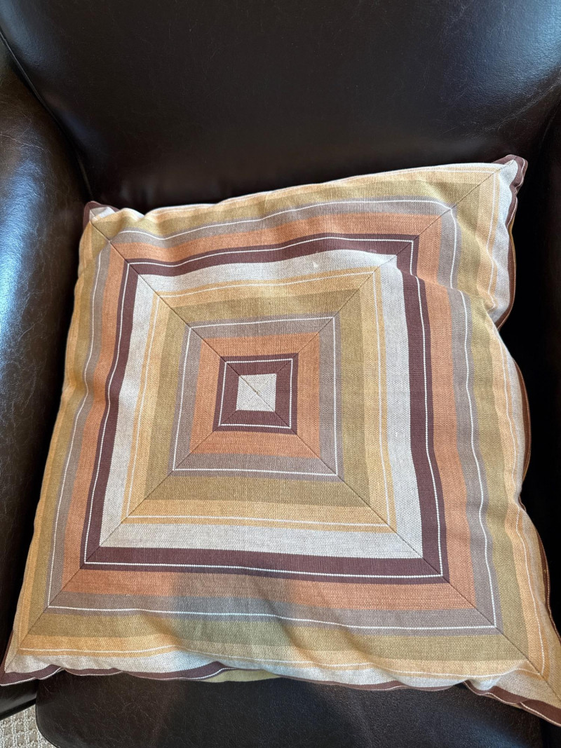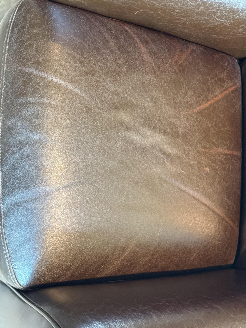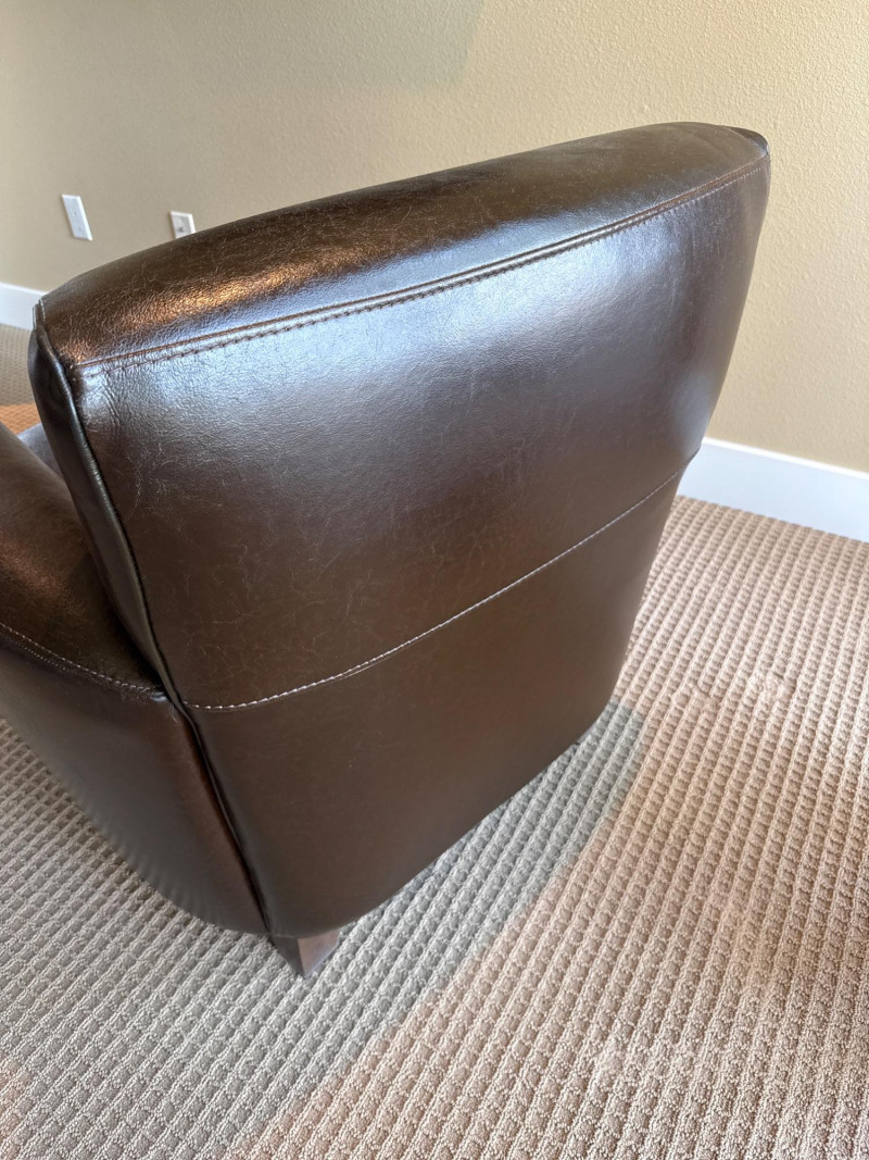 Elevate your space with this stylish and comfortable seating set featuring a genuine Natuzzi leather chair, matching ottoman, and modern side table. Pillow and candle included. This set showcases a sleek, contemporary design with rich brown leather upholstery and smooth, rounded arms for a cozy yet sophisticated look. The leather has developed a natural patina, adding character while still maintaining a clean, well-kept appearance. Like new appearance. Side Table is 20in wide, 24.5in tall Chair is 35in tall, 36in wide, 30in long approximately Ottoman is 15in tall, 36in wide, 17in long approximately