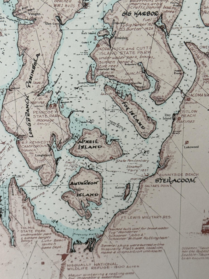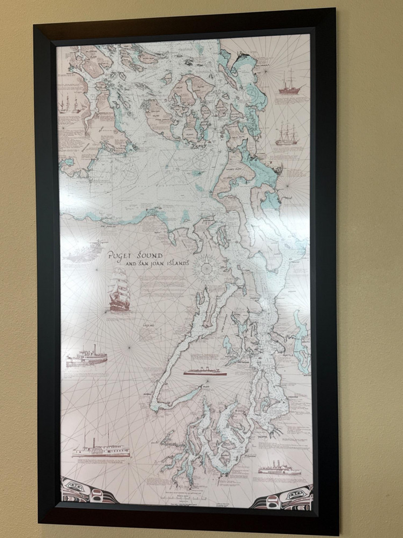 Lot # 100 - Framed Puget Sound & San Juan Islands Nautical Map Wall Art