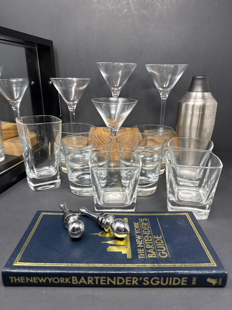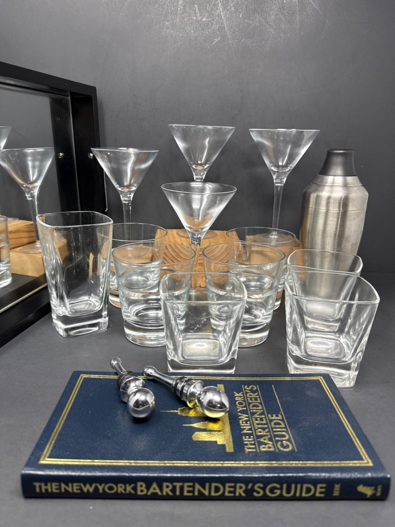 Lot # 105 - Cocktail Glassware Set – Bartender Guide Book, Tray & Accessories