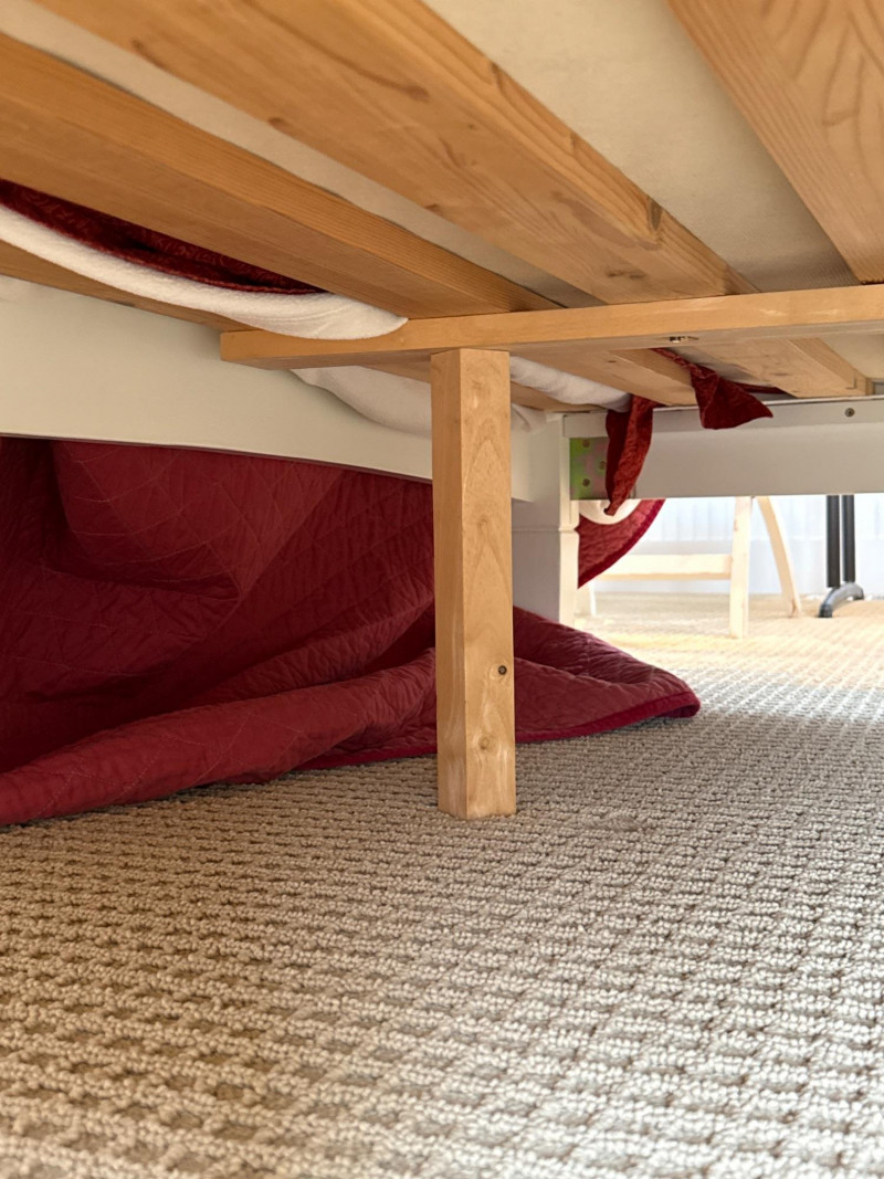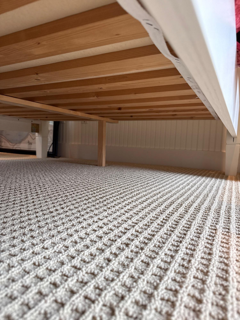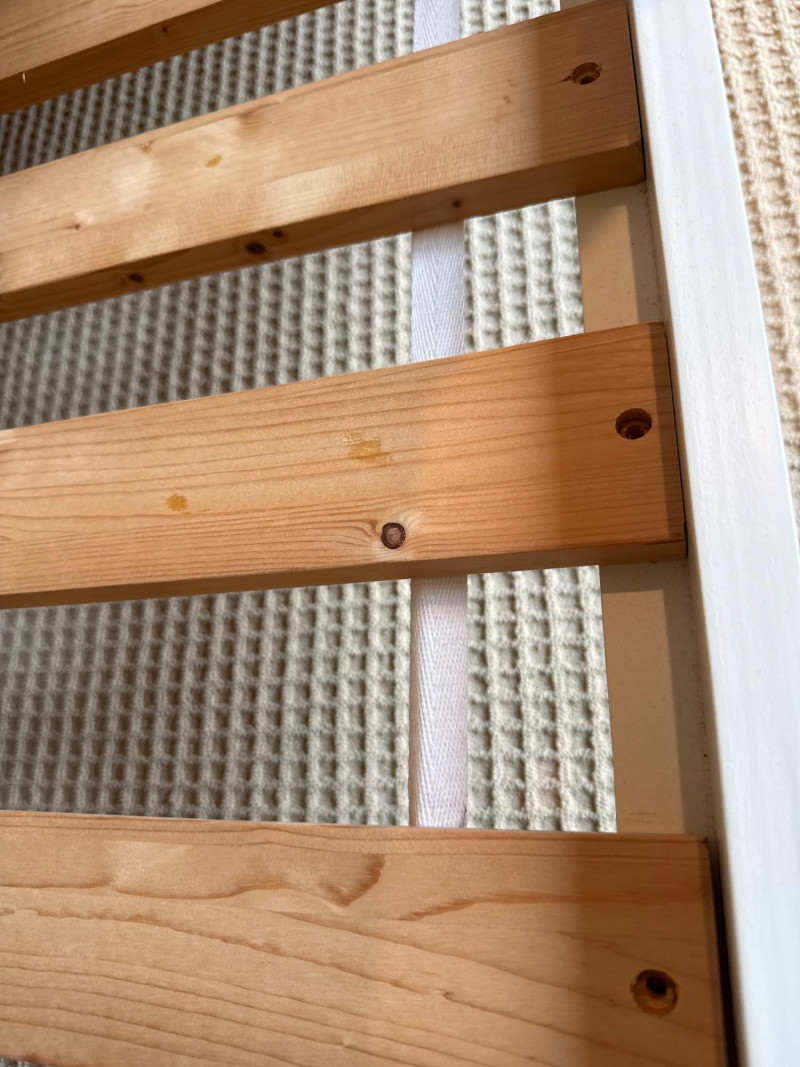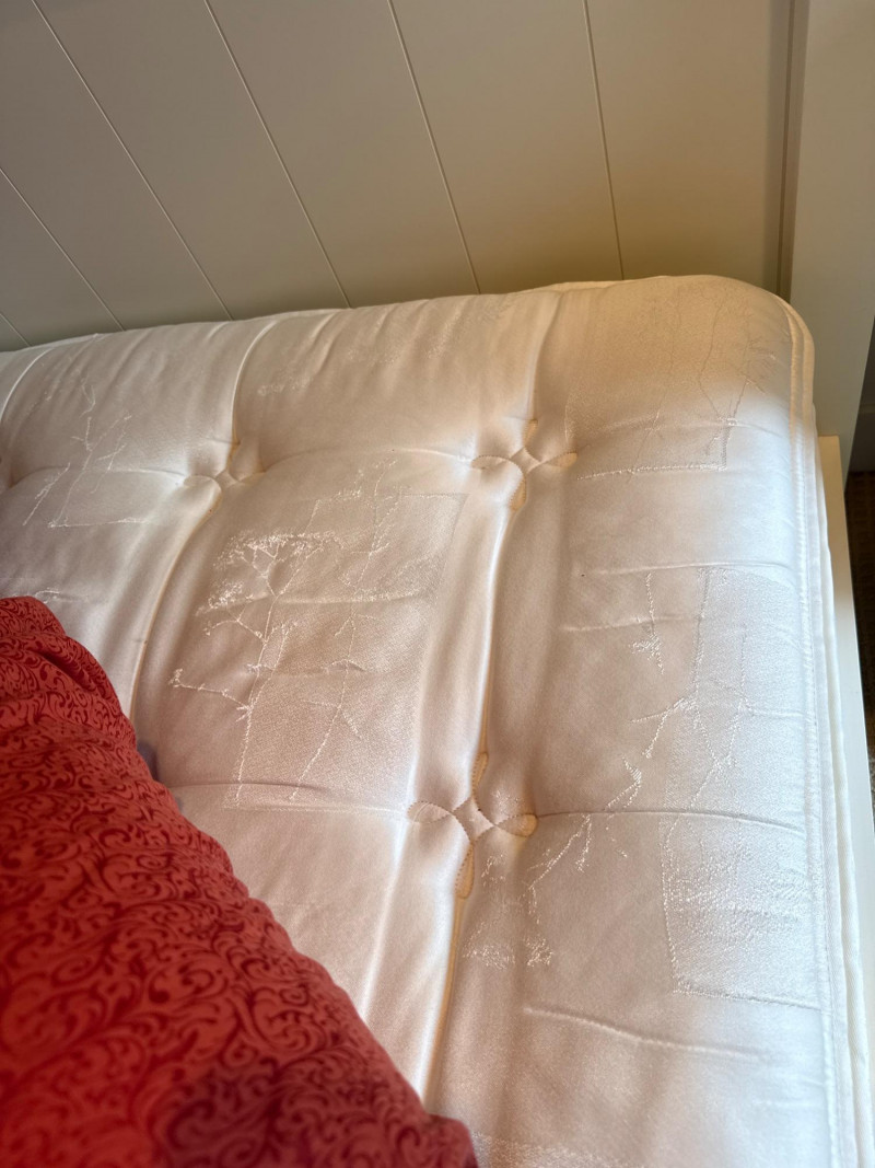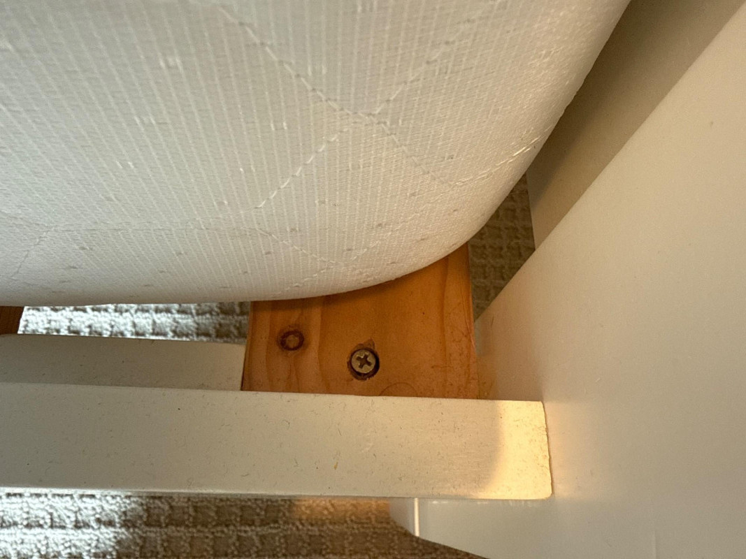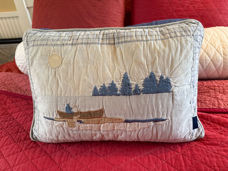 Pottery Barn teen bed in white. Very good condition. Bedding and mattresses included. Was in a guest room with minimal use. Decorative pillows included. Slat board support with boxspring. Label says queen bed. **MUST BRING TOOLS AND SUPPORT TO LOAD. EASY LOAD LOCATION WITH ONLY ONE STEP**