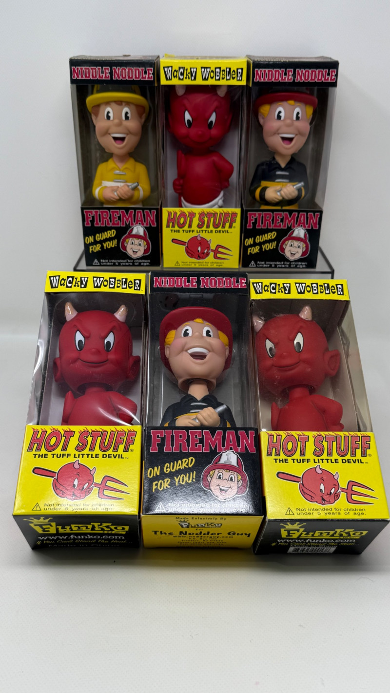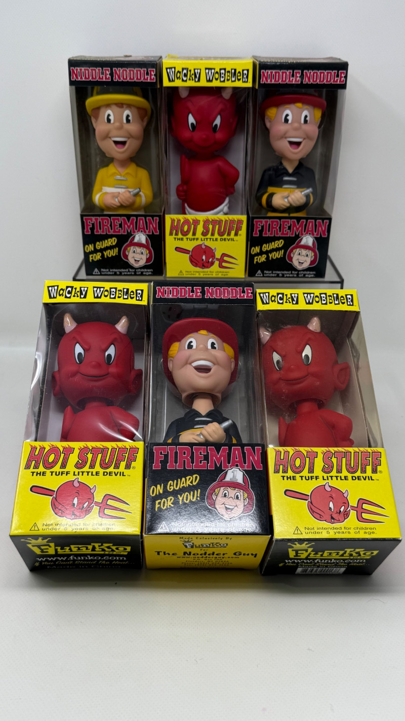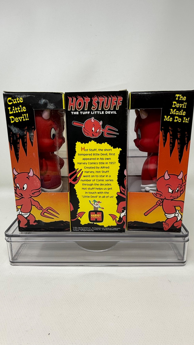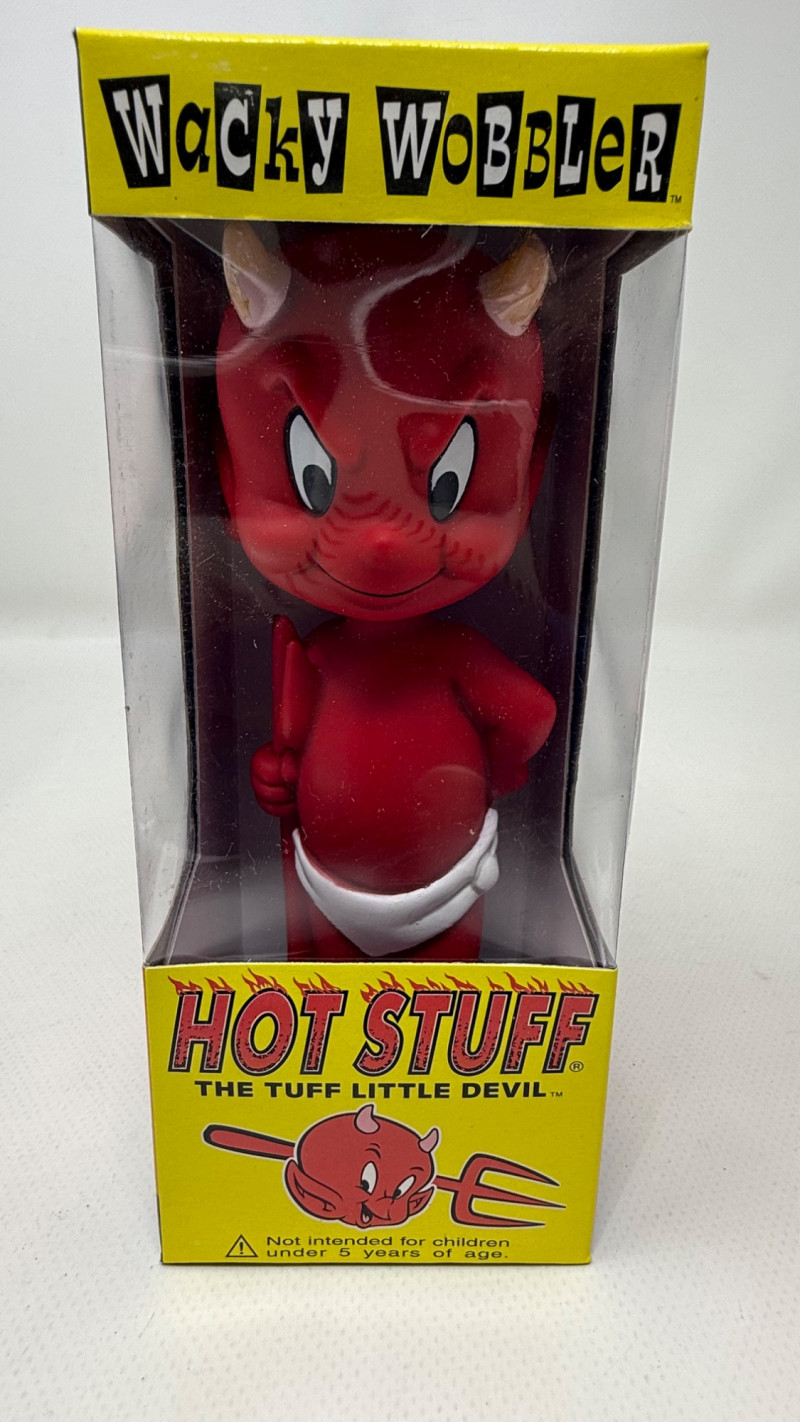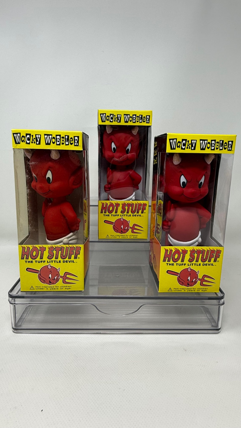 3 × Hot Stuff All figures are sealed in their original boxes, which display bright colors and vintage‑inspired designs. These pieces are ideal for collectors of novelty toys, retro pop culture memorabilia, or Wacky Wobbler enthusiasts.