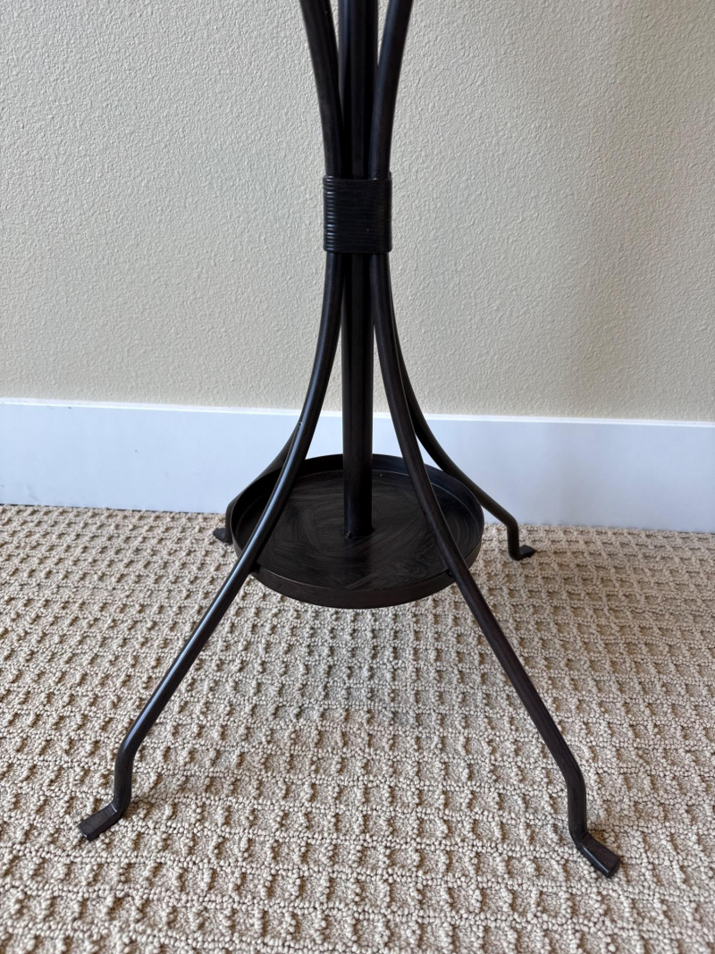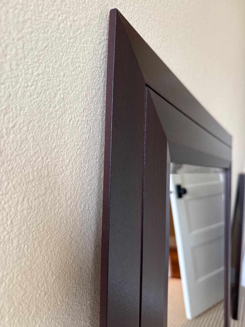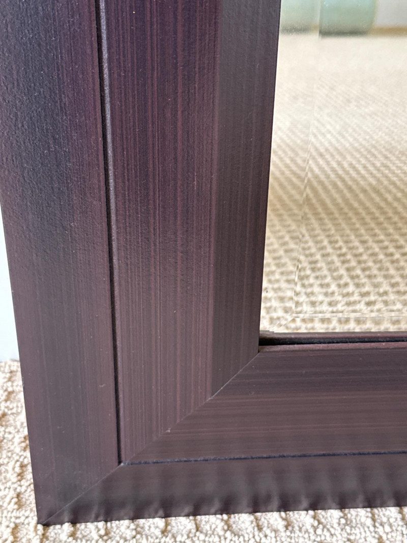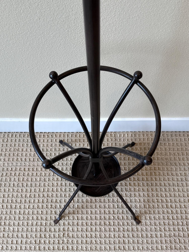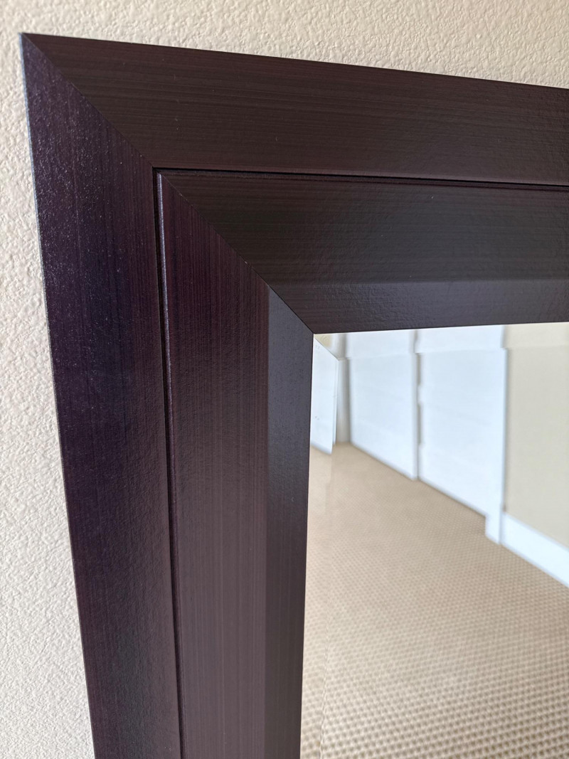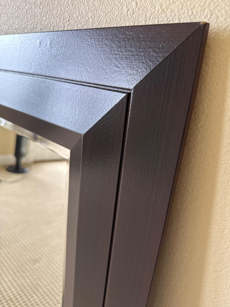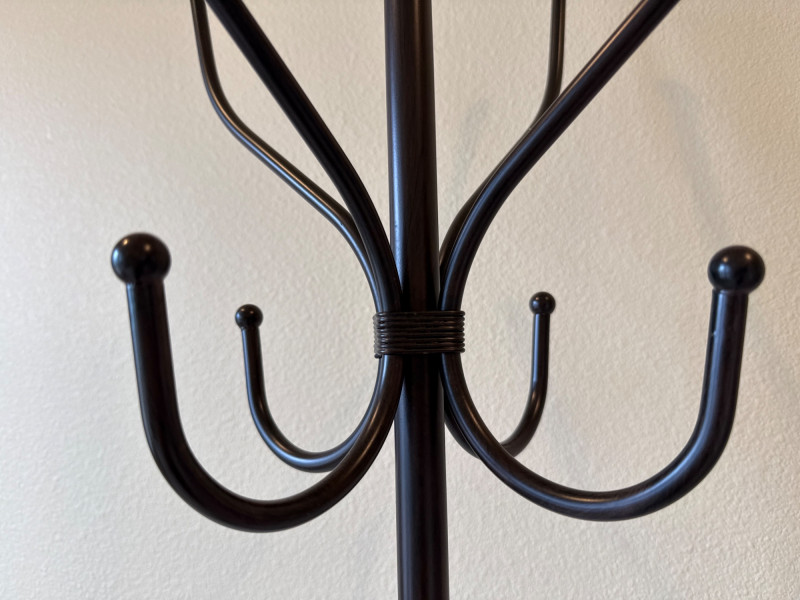 Two classic pieces for any home, office or shop. Both are in great condition. A black metal coat rack in a modern, minimalist design. Dimensions are 14 inches wide, 74 in tall Large rectangular mirror with a dark wooden frame. Its heavy and has mounting hardware on back. Mirror dimensions are 35in wide, 47in long.