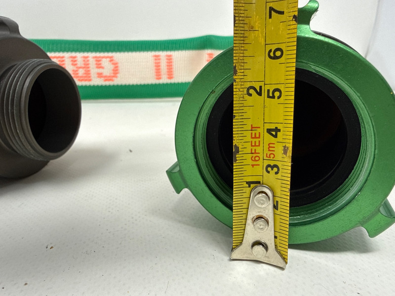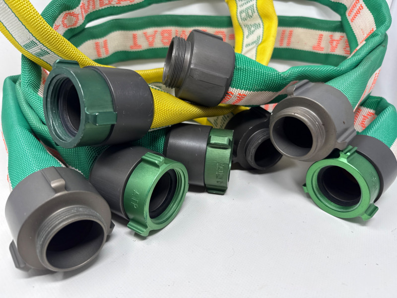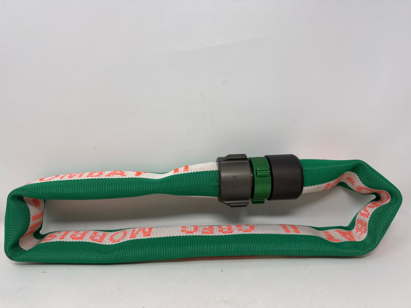 The Hi-Combat hoses are for professional‑grade water transfer or firefighting equipment, neatly coiled and ready for use or storage. These appear to be display or sample sizes. Hi-Combat Hoses are 55 inch long. Heavy‑duty, woven fabric hoses—likely industrial, agricultural, or firefighting style. Their construction suggests they’re meant for high‑pressure water movement.