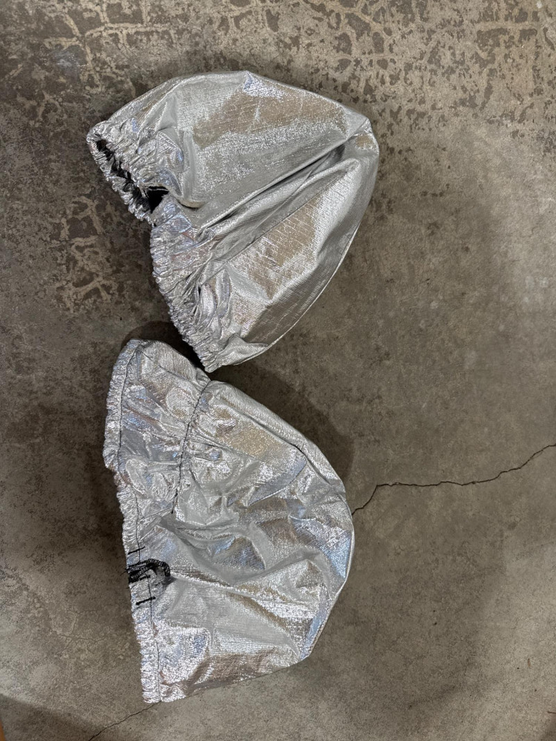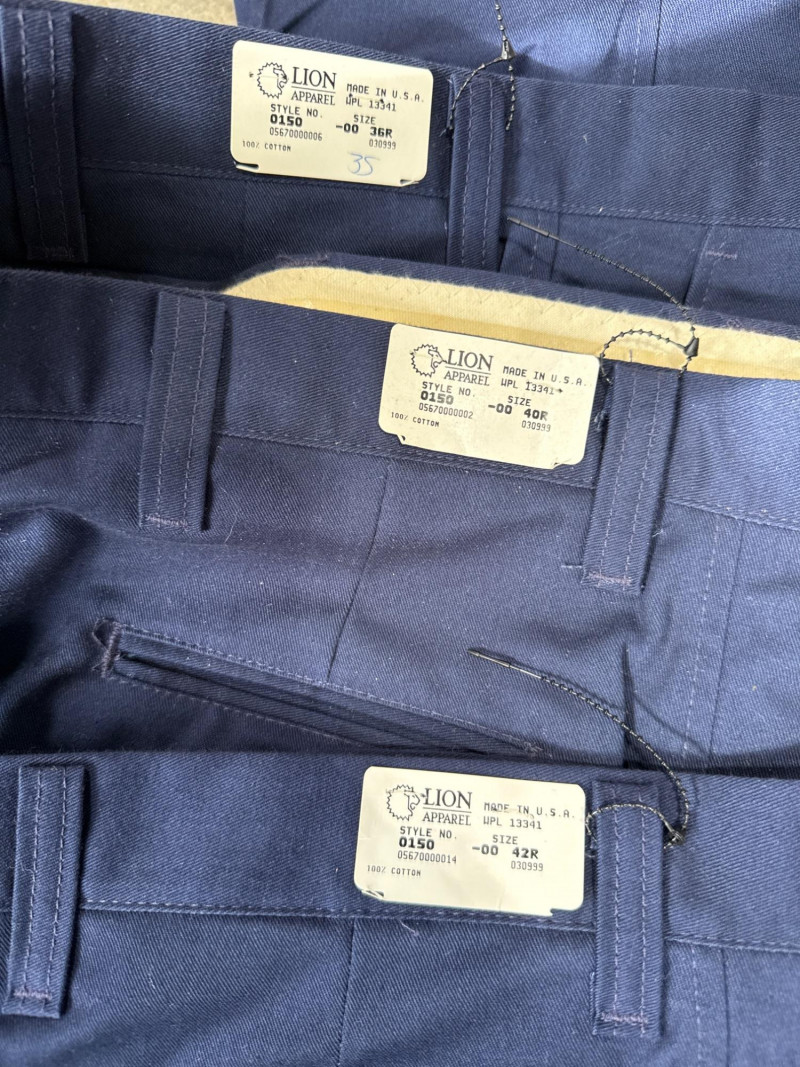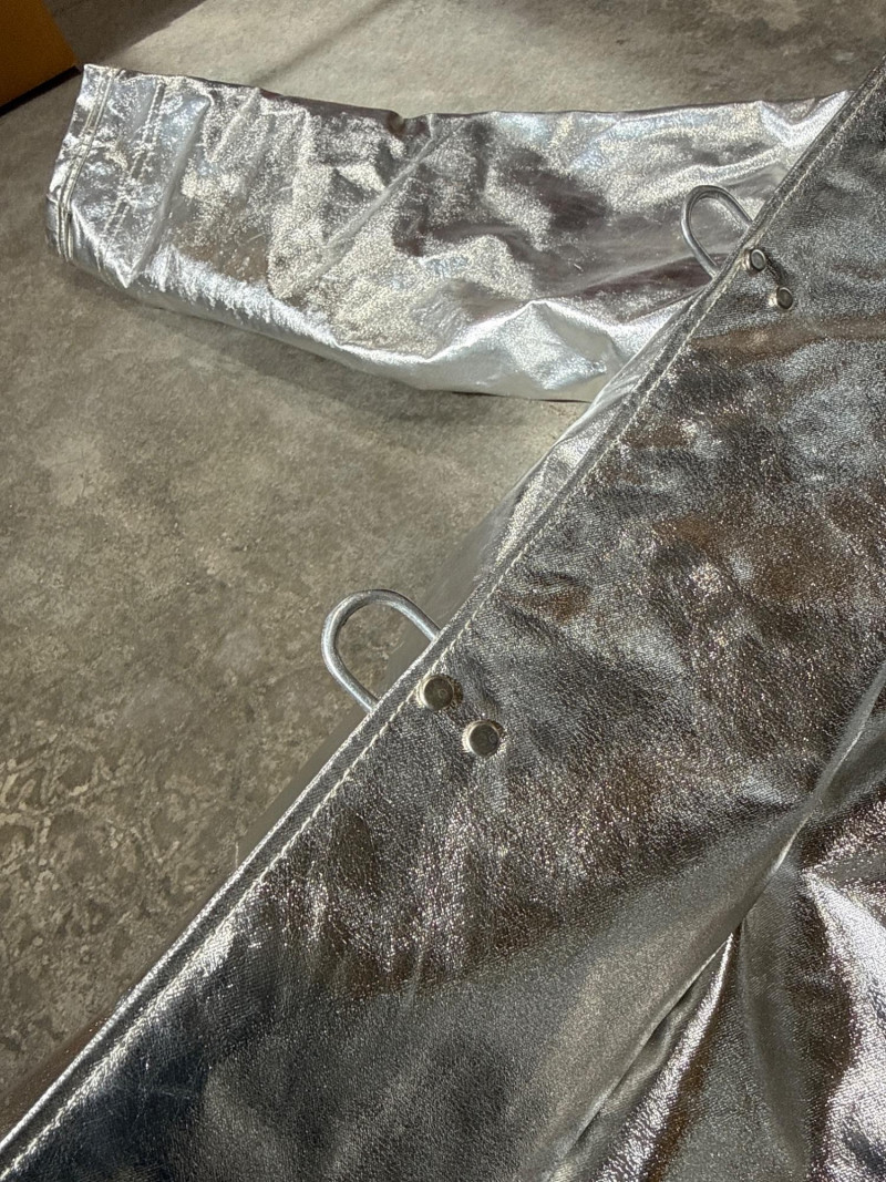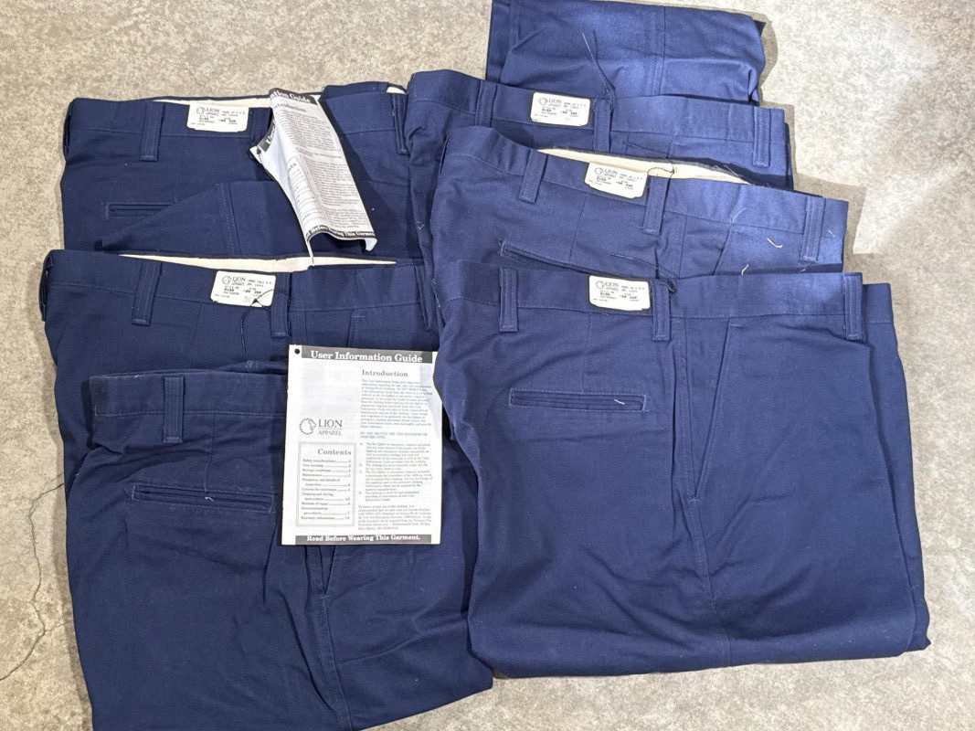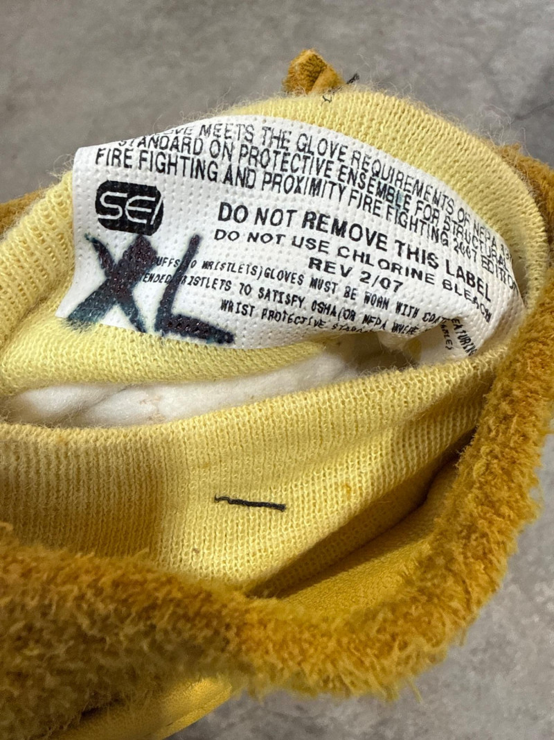 Uniquely different than the other firefighting gear in the auction. This lot features: Scotchlite red safety coverall with reflective striping. This item still has tags. Size Medium Leather gloves with fleece lining. Yellow safety helmet, NEW MSW canvas duffle bag. Multiple pairs of new trousers. Blue duty uniform. See pics for sizes. Aluminized proximity fire protection coat. Designed for high temperature industrial environments. Metal clasps. Flame retardant vapor barrier