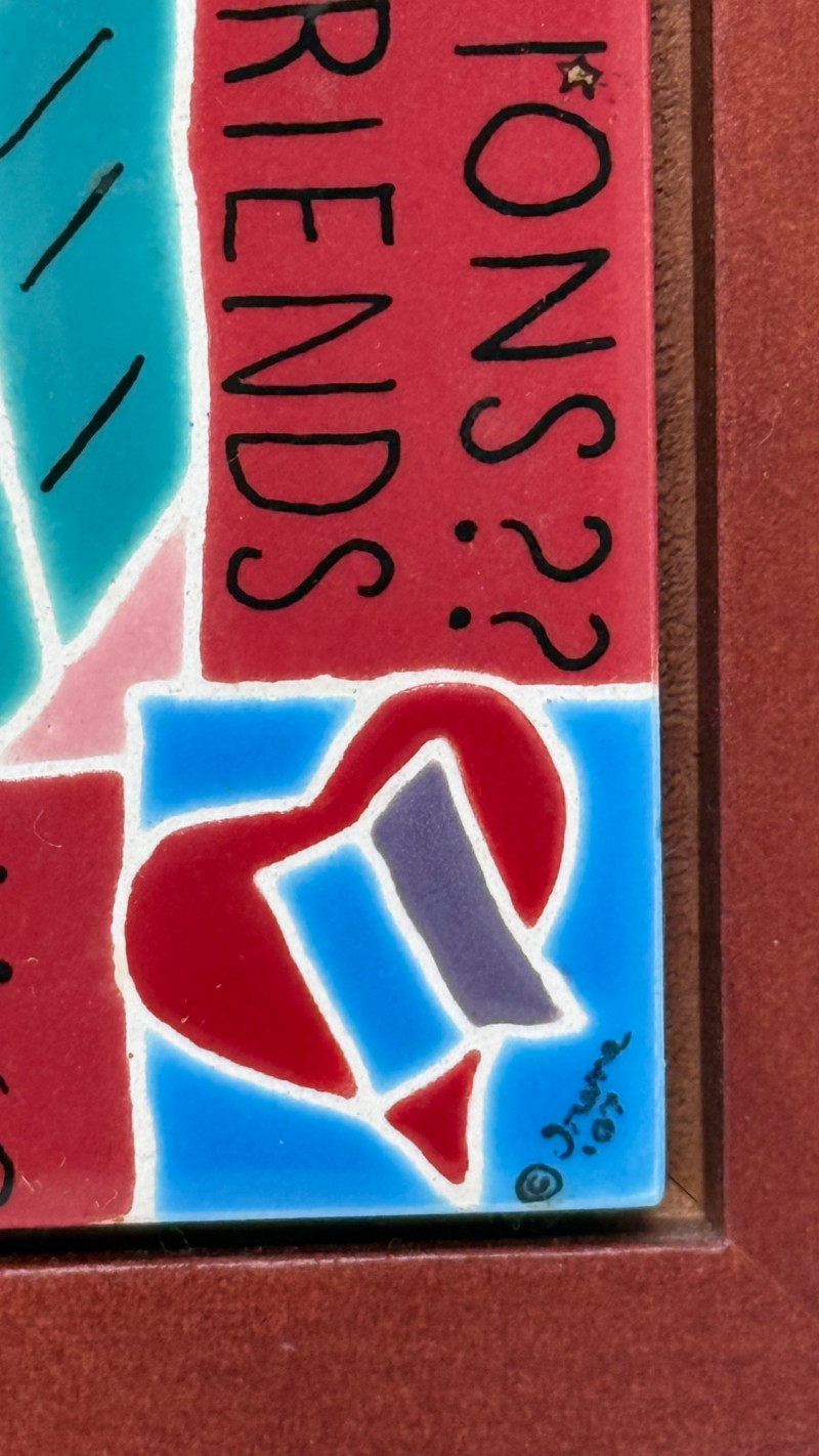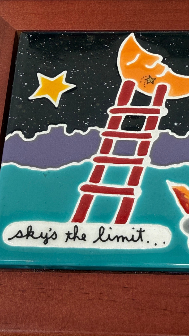 poetic, slightly enigmatic text. Unique display of color, wisdom, art and connection. Handmade—possibly ceramic or clay—giving them a tactile, crafted quality. Smaller tiles are 6.2 inches wide and long Signed by the artist. A local of the Pacific Northwest