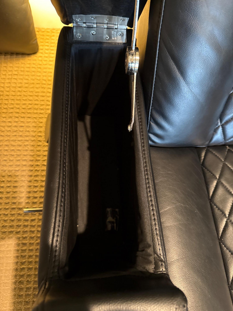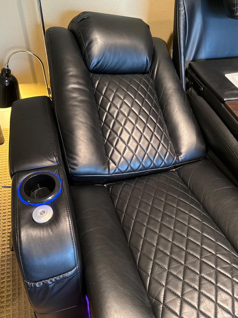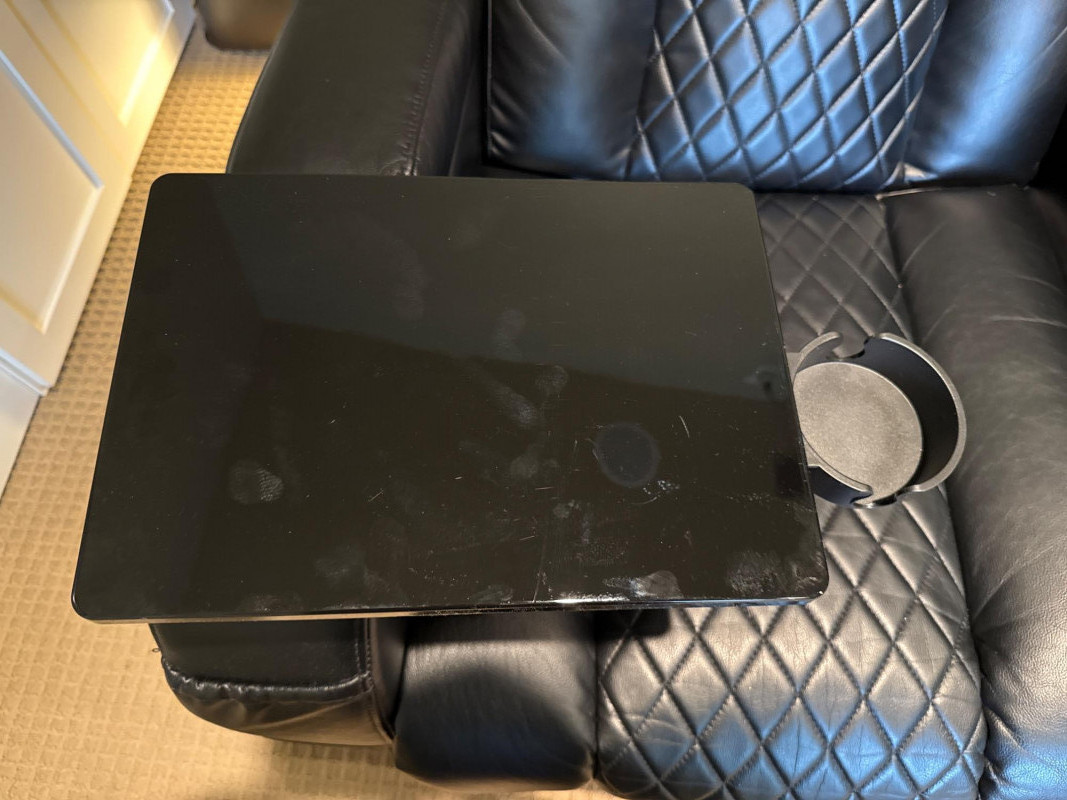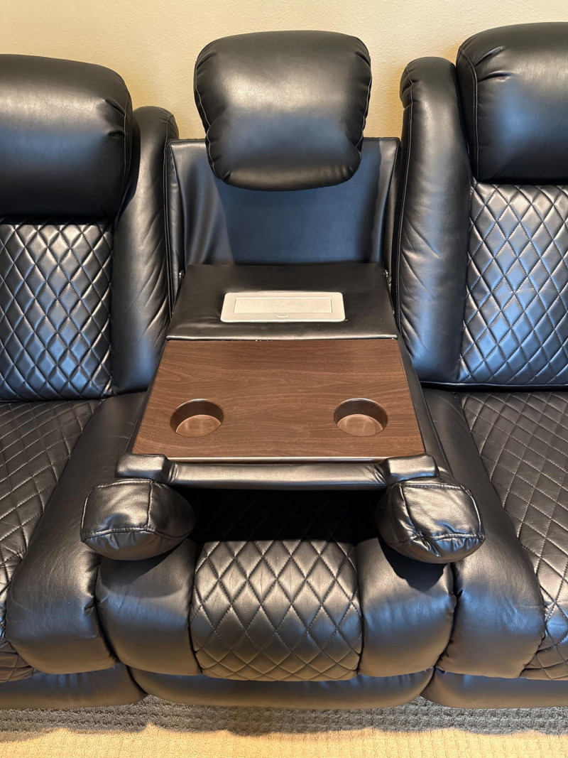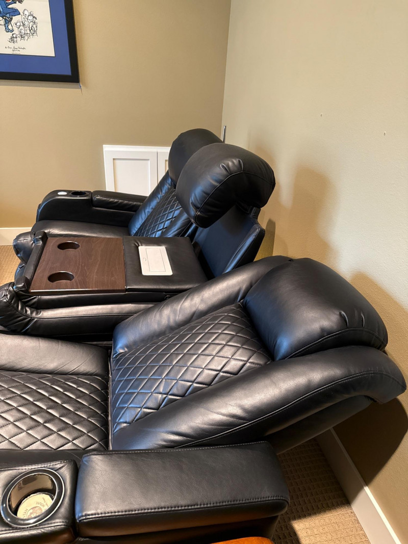 Fully loaded recliner set with all the bells and whistles. Removable trays, lighted cup holders, multiple storage options, charging ports, under seat lighting and more. One seat appears to be off track slightly and leans. it still functions normally. Multiple settings. Upholstery is in great condition. **Sold as is. **MUST BRING TOOLS, EQUIPMENT AND SUPPORT TO LOAD. EASY LOAD LOCATION. **