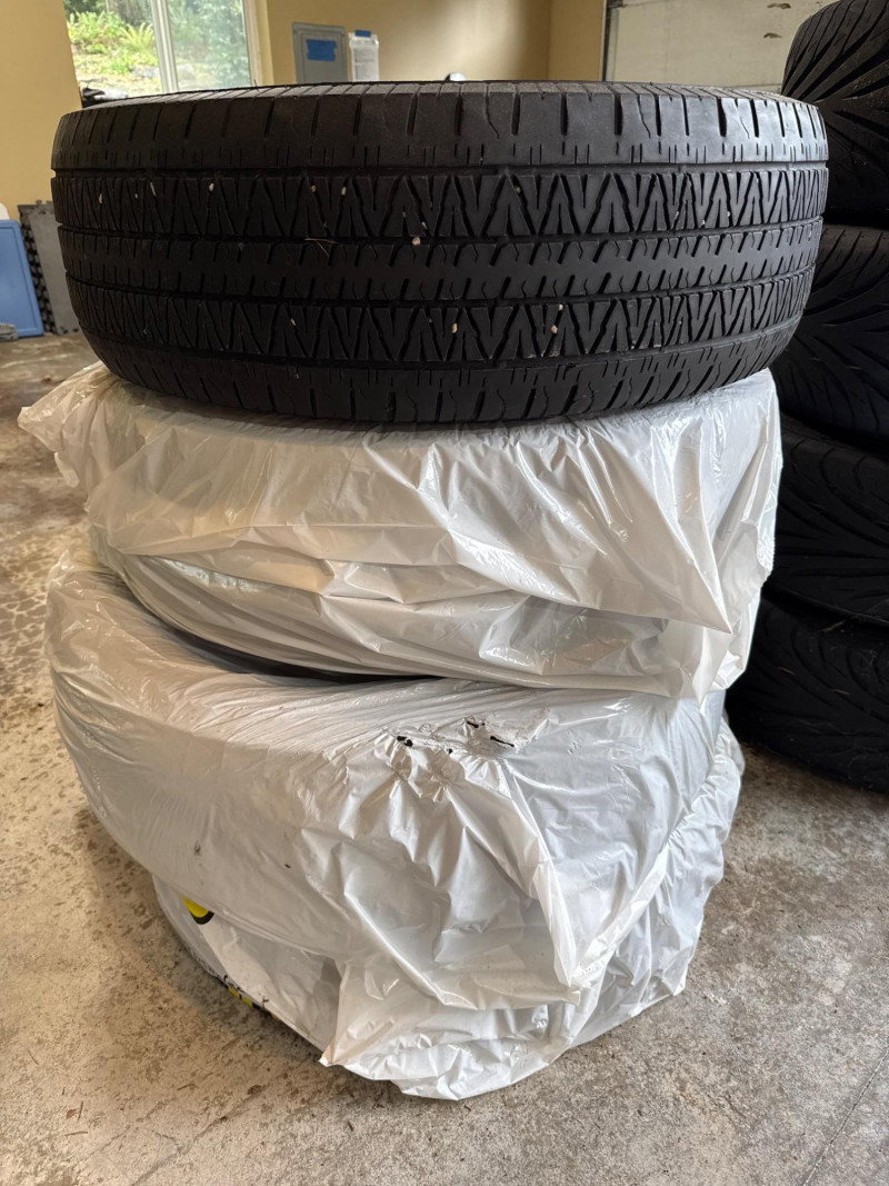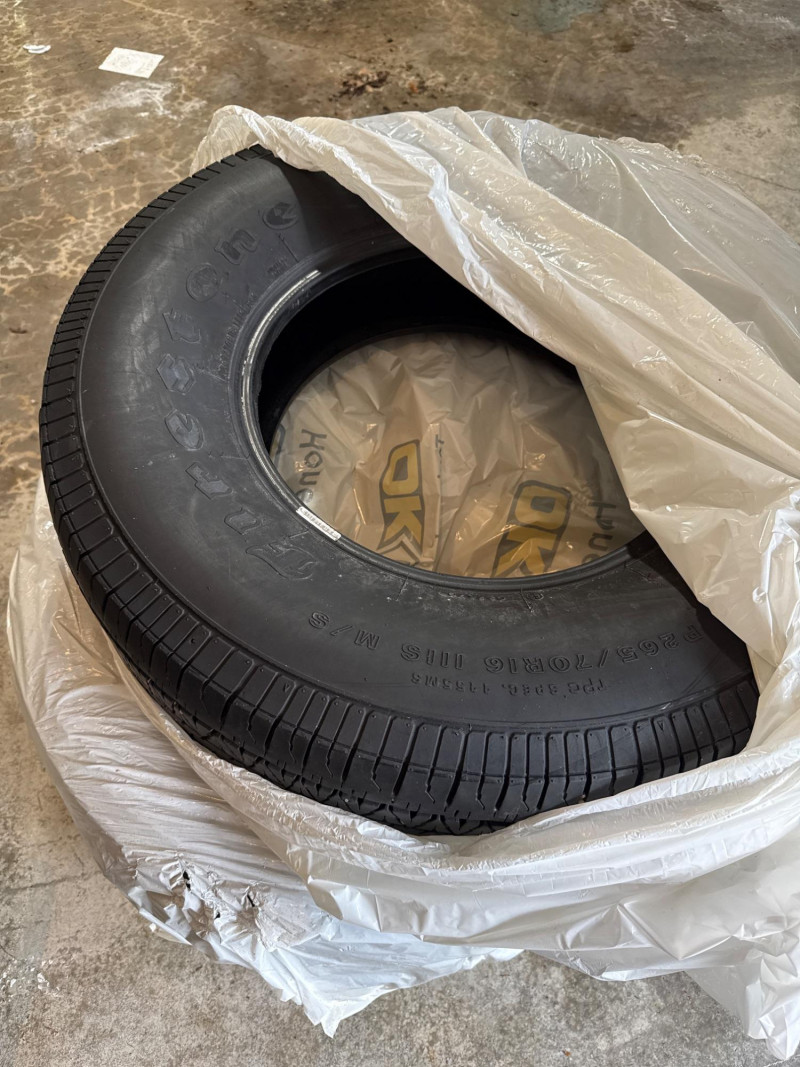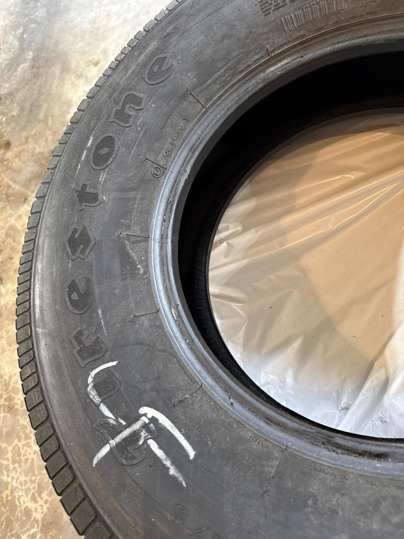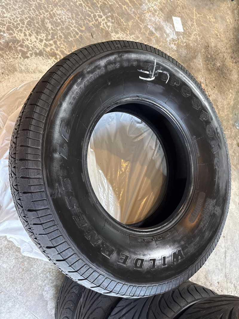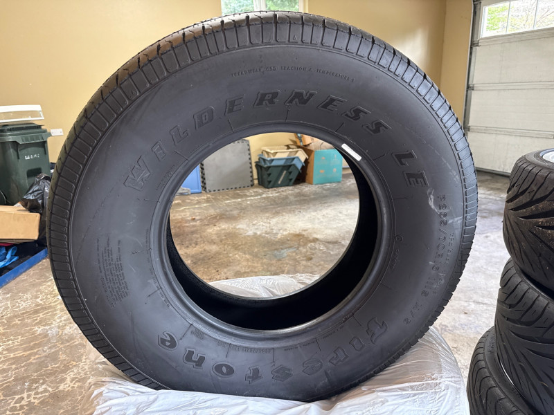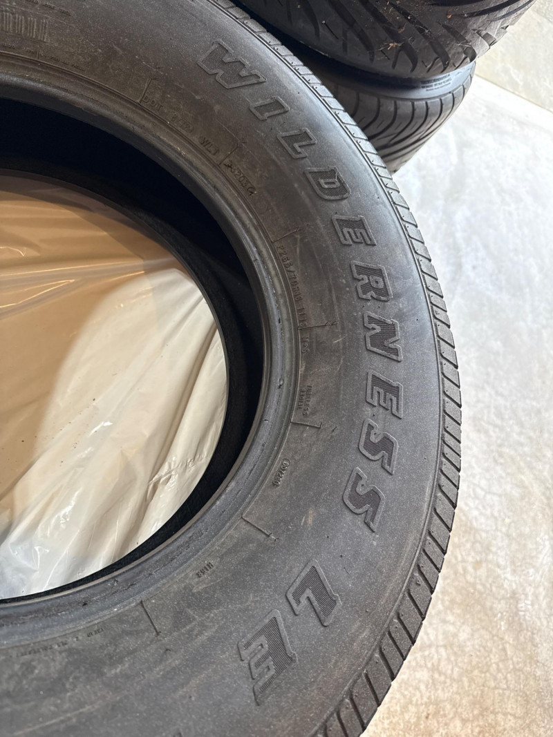 Used Firestone Wilderness tires. Stored indoors and wrapped. See pics for details on size, model, wear, specifics