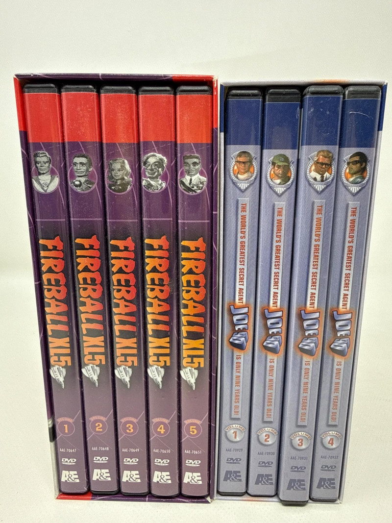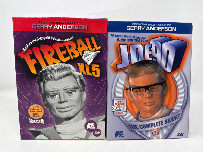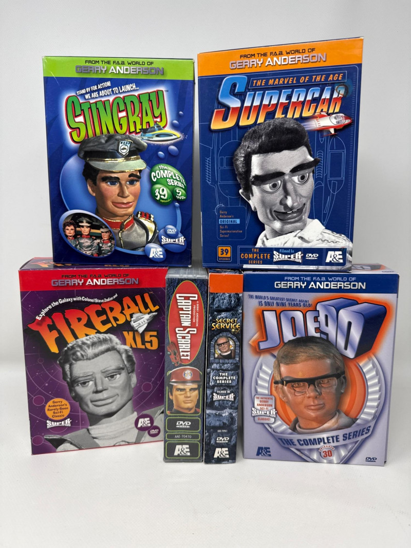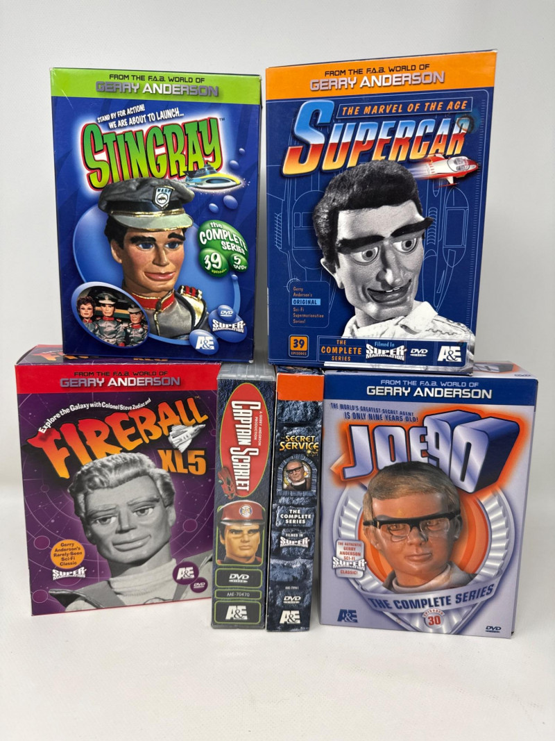 Box sets of Gerry Andersons Super Marionation Sci-Fi television shows. Iconic shows: Fireball XL5, Joe 90, The Marvel of the Age Supercar, Stingray, Secret Service, Captain Scarlet. Well maintained collection