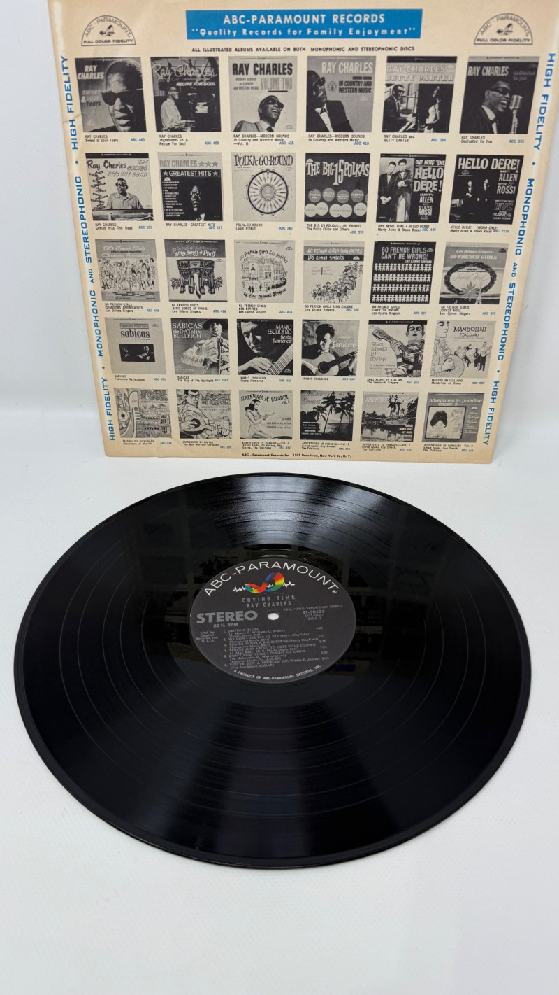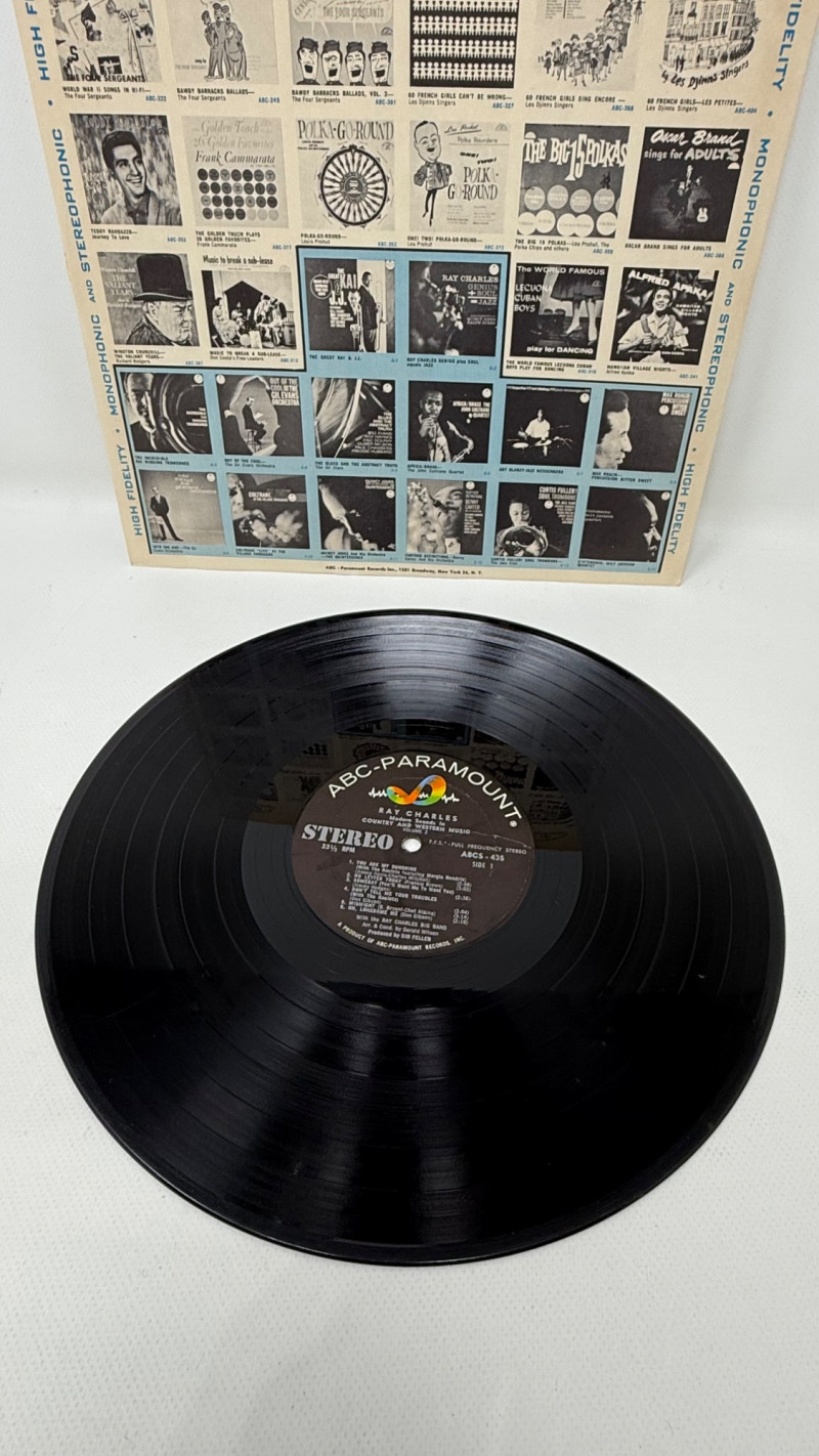 Vintage vinyl album lot featuring legendary artists Ray Charles and Marvin Gaye. This collection includes three Ray Charles records—Modern Sounds in Country and Western Music (Volume Two), Crying Time, and In Country and Western Music—showcasing his signature blend of country, blues, and soul. Also included is a Marvin Gaye Motown hits album featuring some of his most iconic performances. Vinyl records appear to be in great condition with clean surfaces, while album covers show light to moderate wear consistent with age and storage. A fantastic addition for collectors or fans of classic soul, rhythm & blues, and vintage vinyl.